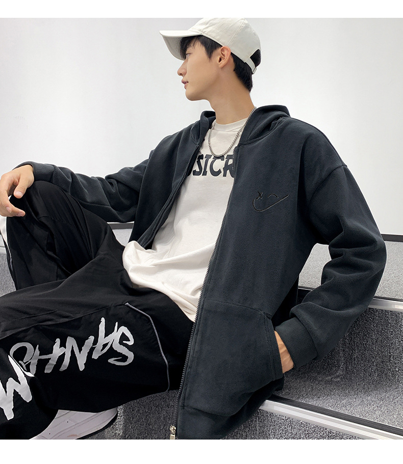 L-8XL秋冬新作男性レジャースポーツフード付きカーディガンセット
