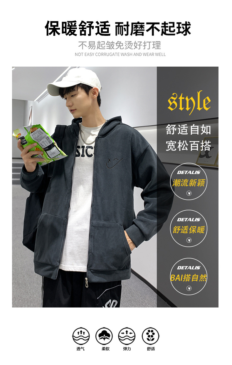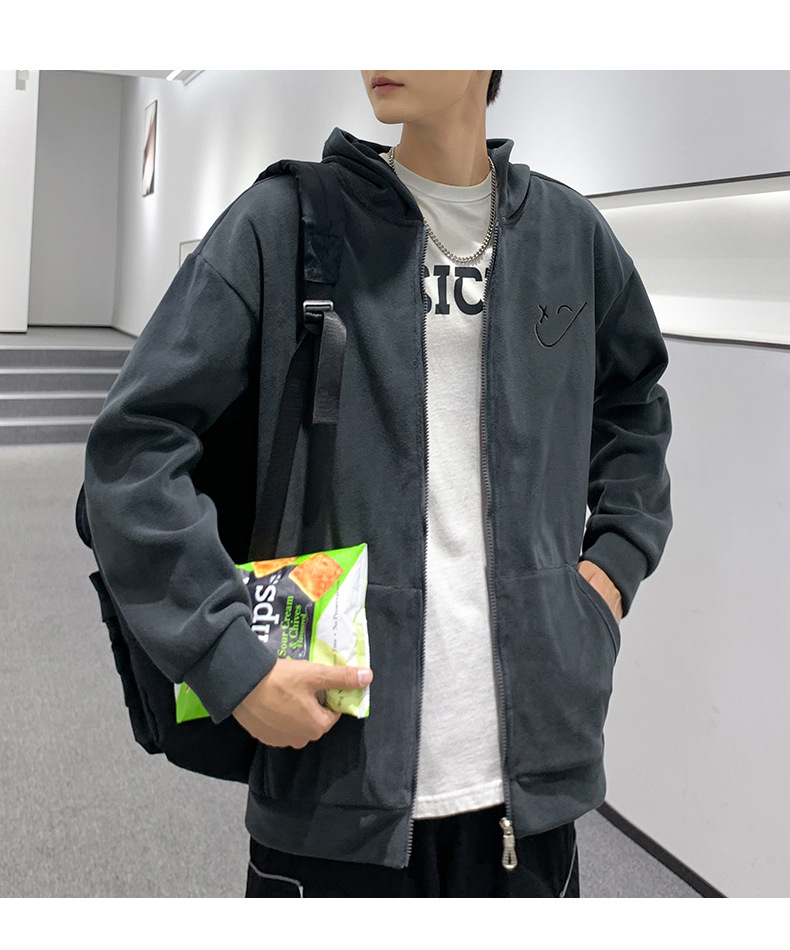 冬服の新型青少年春秋男性ジャケット秋の工装とベルベットのコートと帽子の上着の男