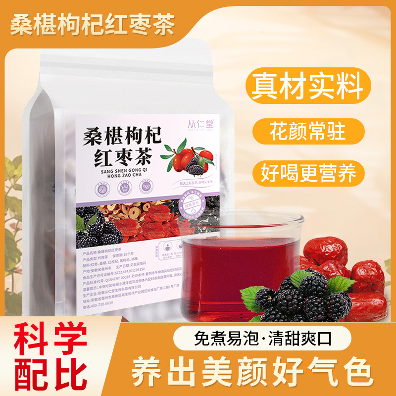 桑の実、黒クコ、赤クコ、干しナツメの組み合わせ花茶パック、桑の実・クコ・ナツメ茶、健康茶、卸売、発送
