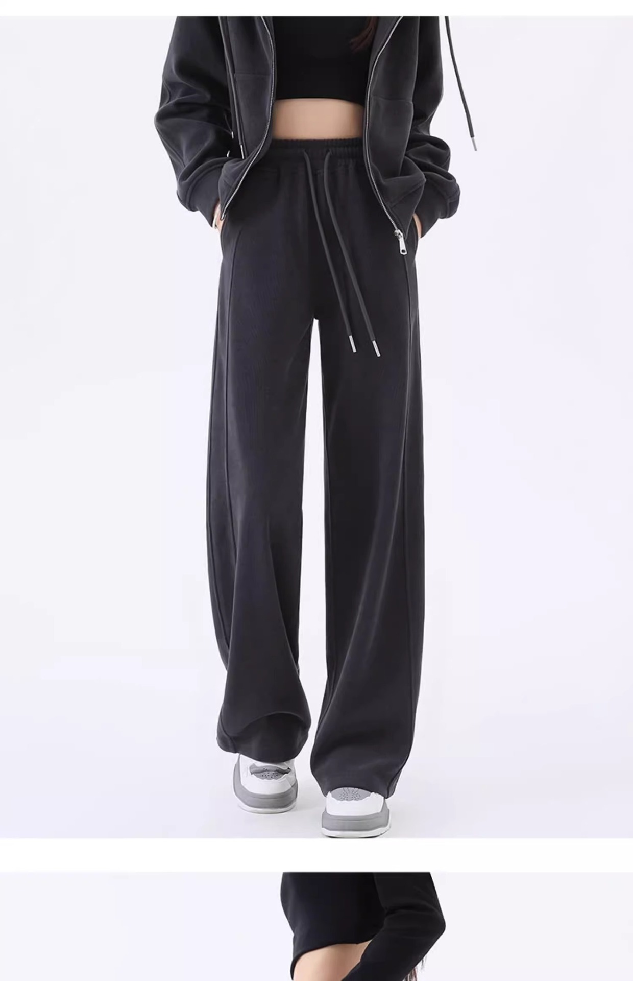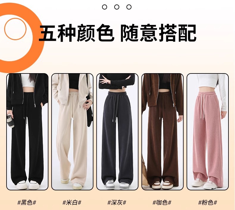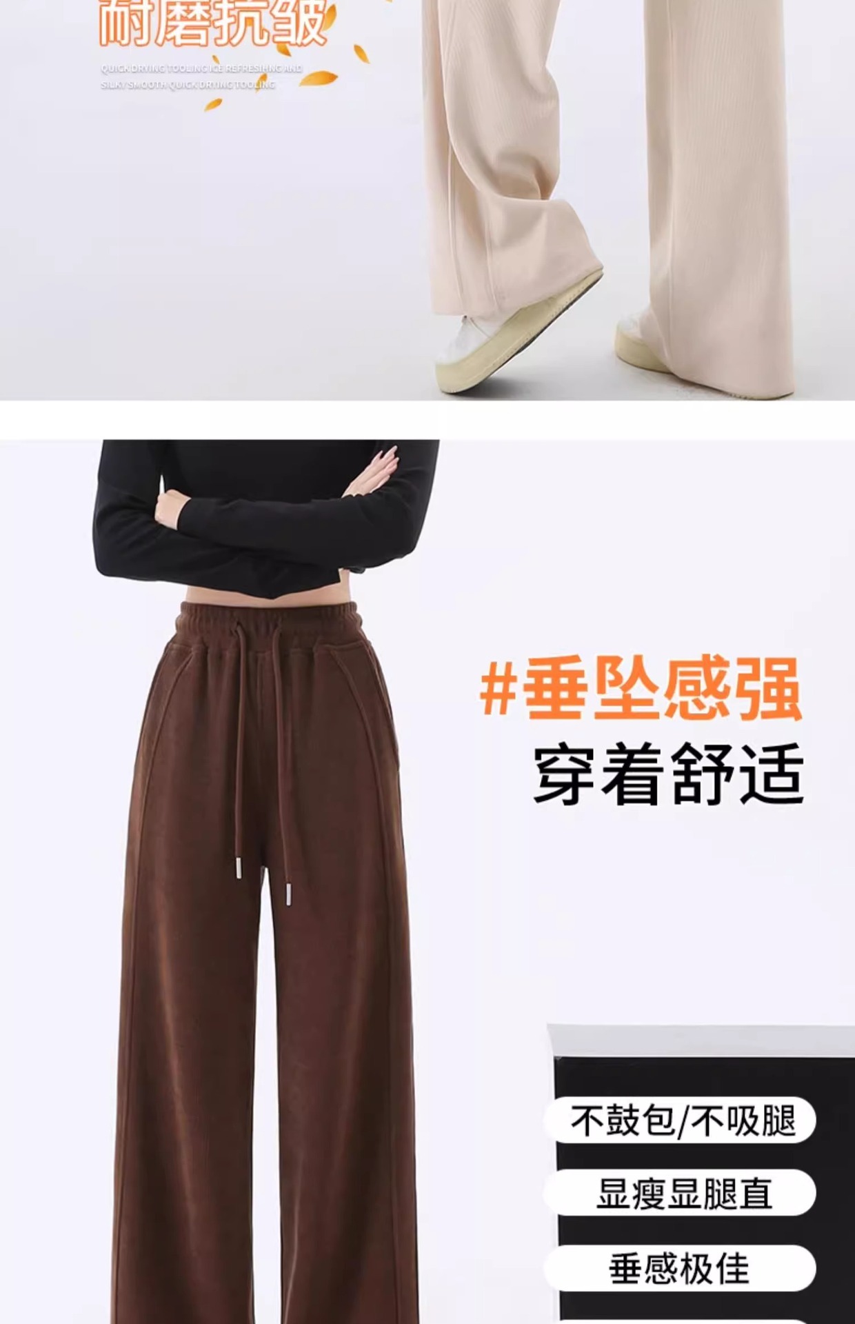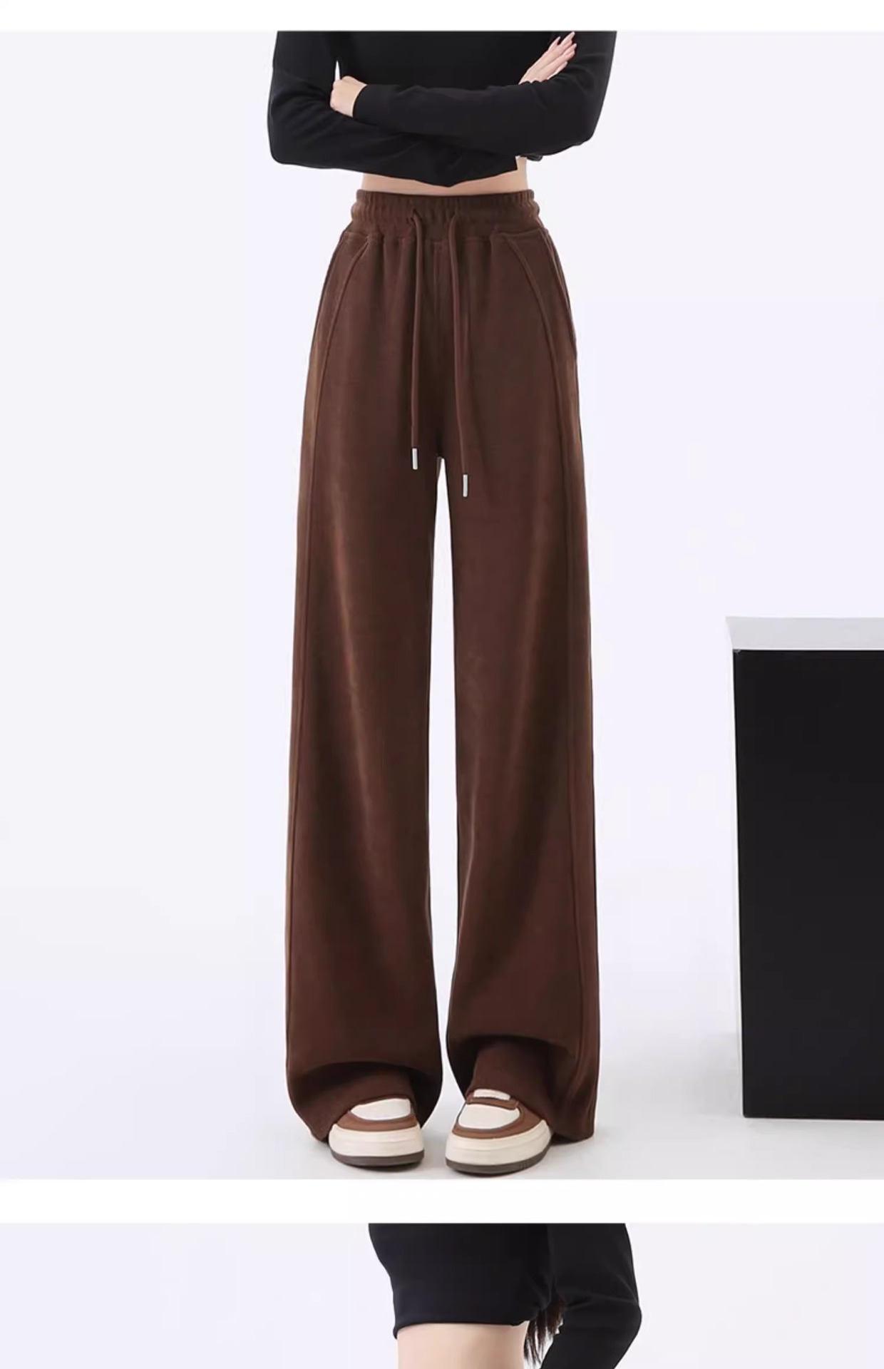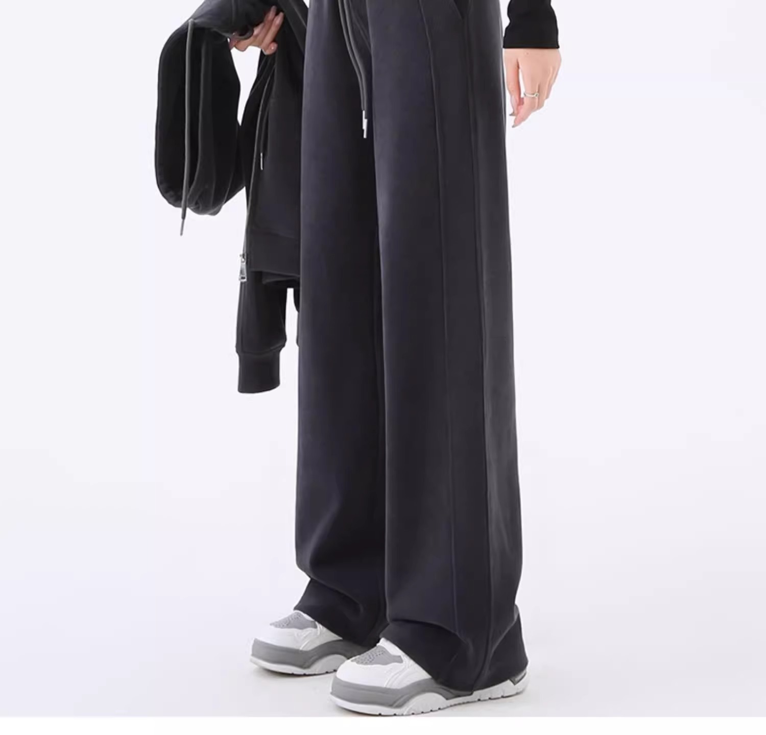 烏梅の紫色のスポーツのズボンの女性の春秋のベルベットの2025の新型のまっすぐな筒の狭い版の衛のズボンの高腰のバナナの広腿のズボン