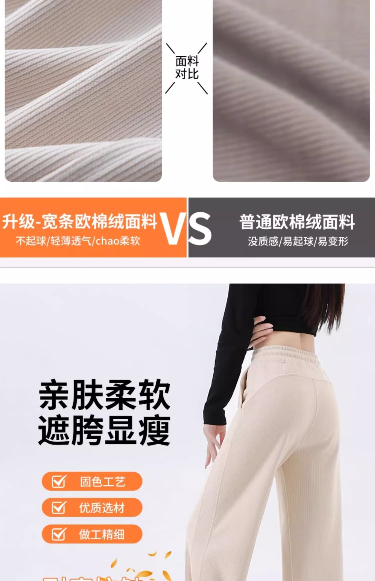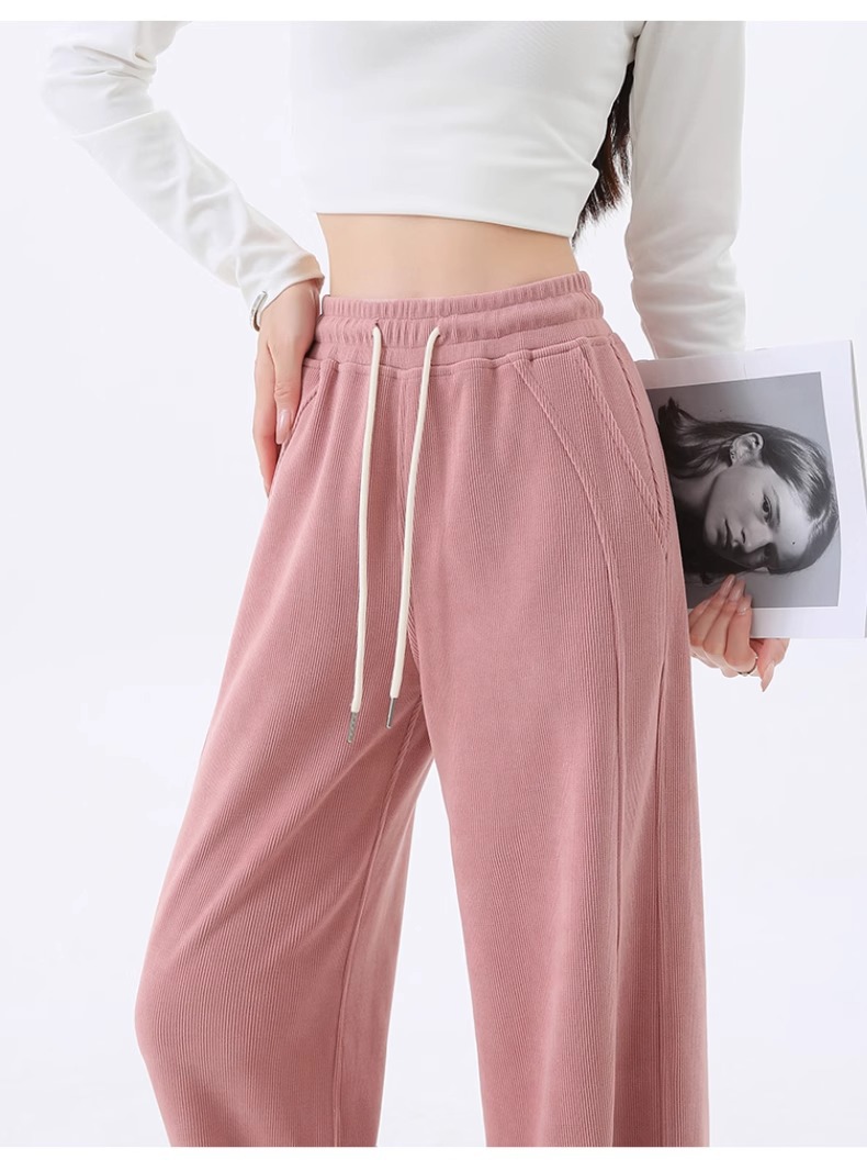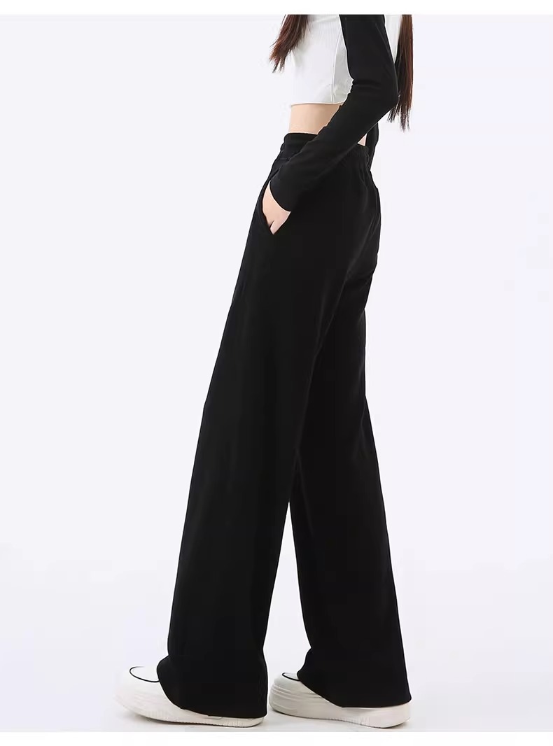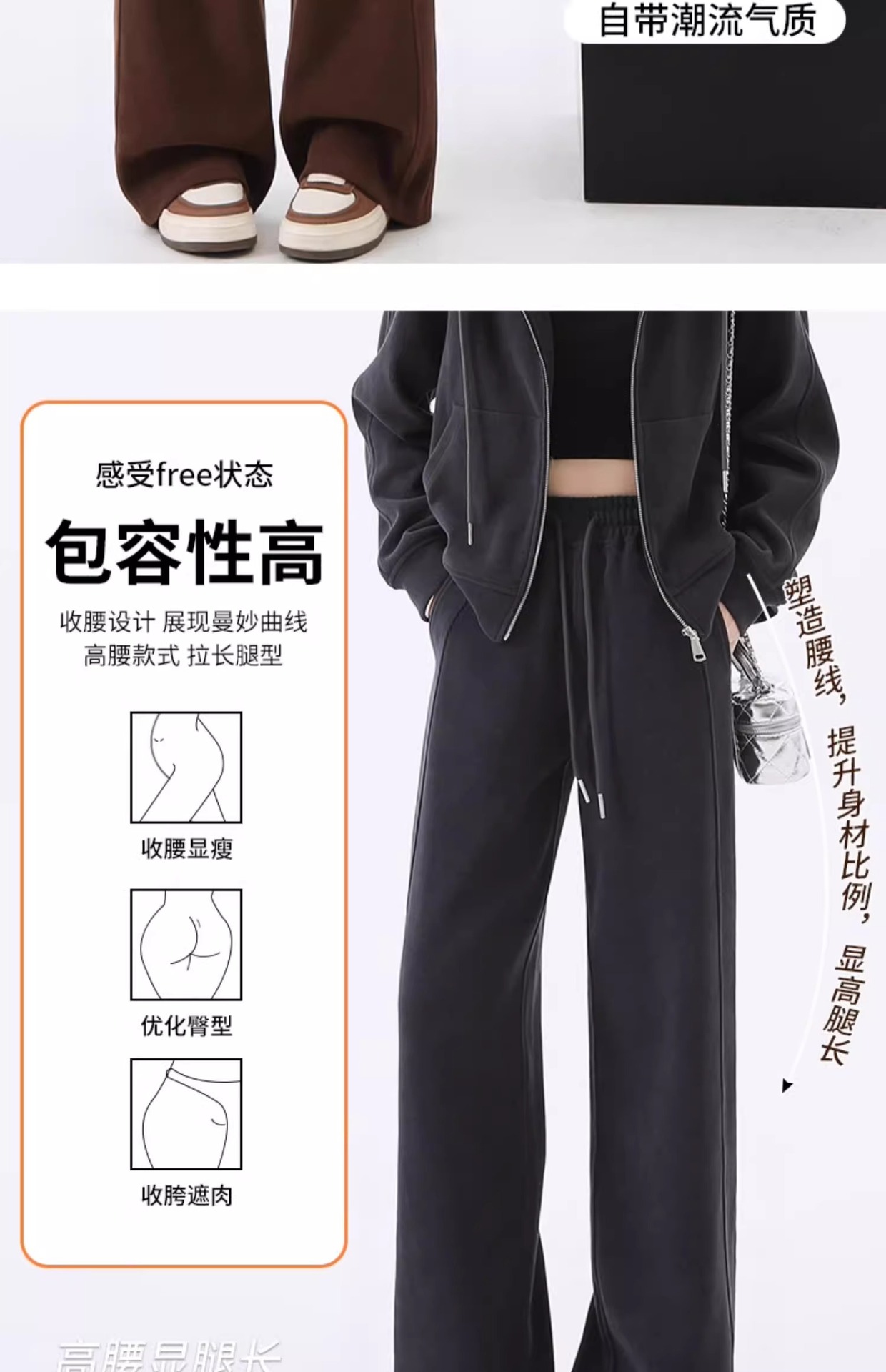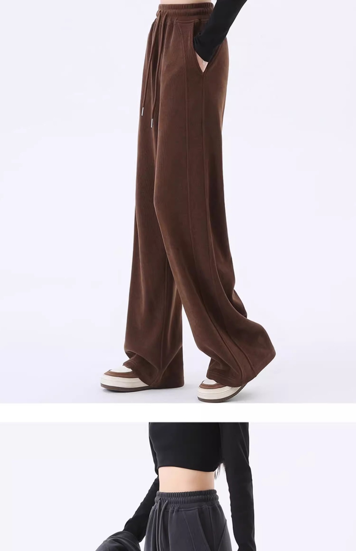 烏梅の紫色のスポーツのズボンの女性の春秋のベルベットの2025の新型のまっすぐな筒の狭い版の衛のズボンの高腰のバナナの広腿のズボン