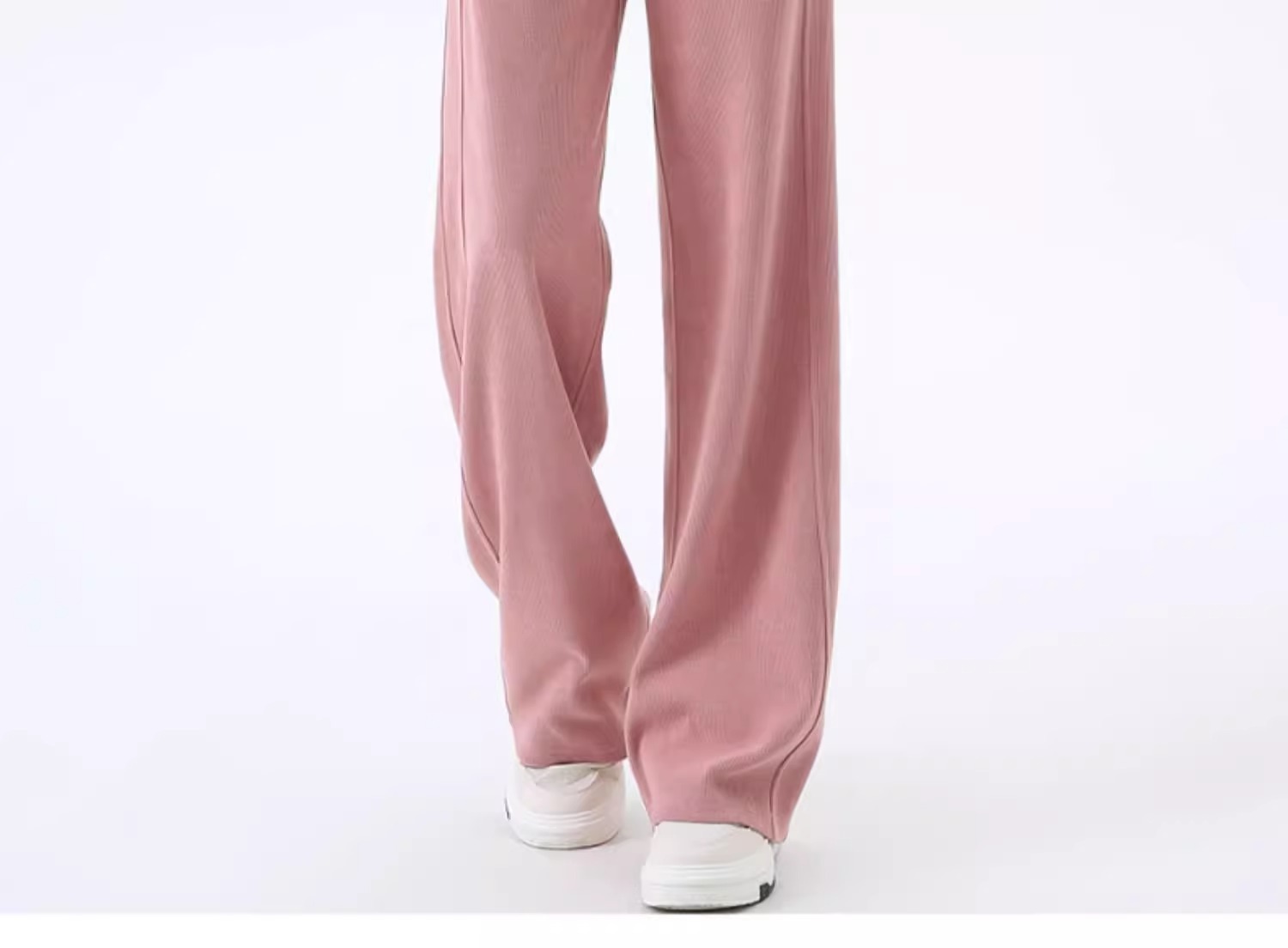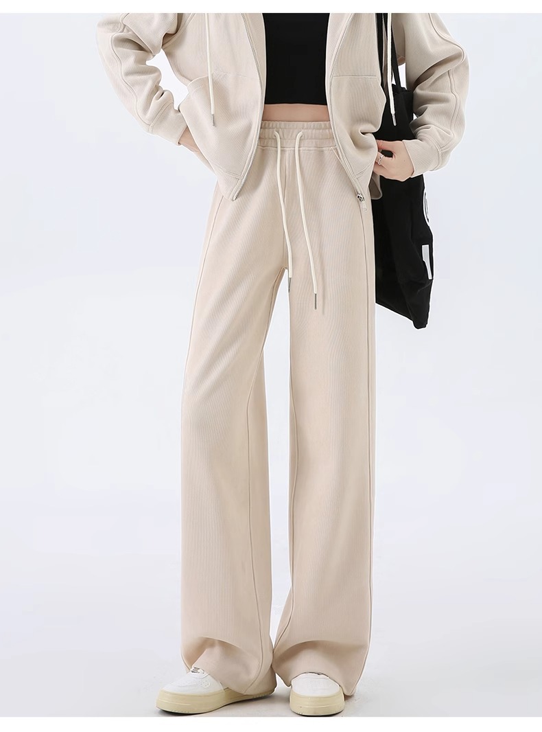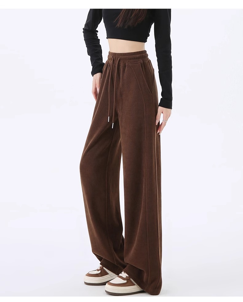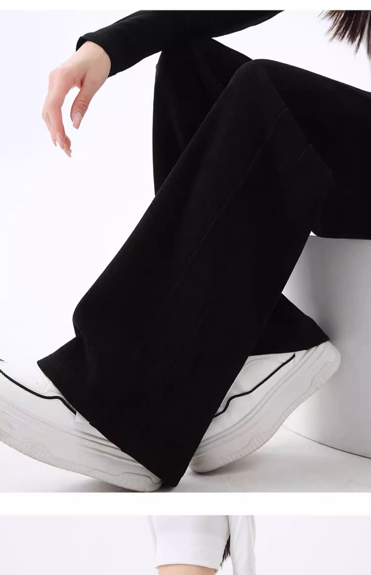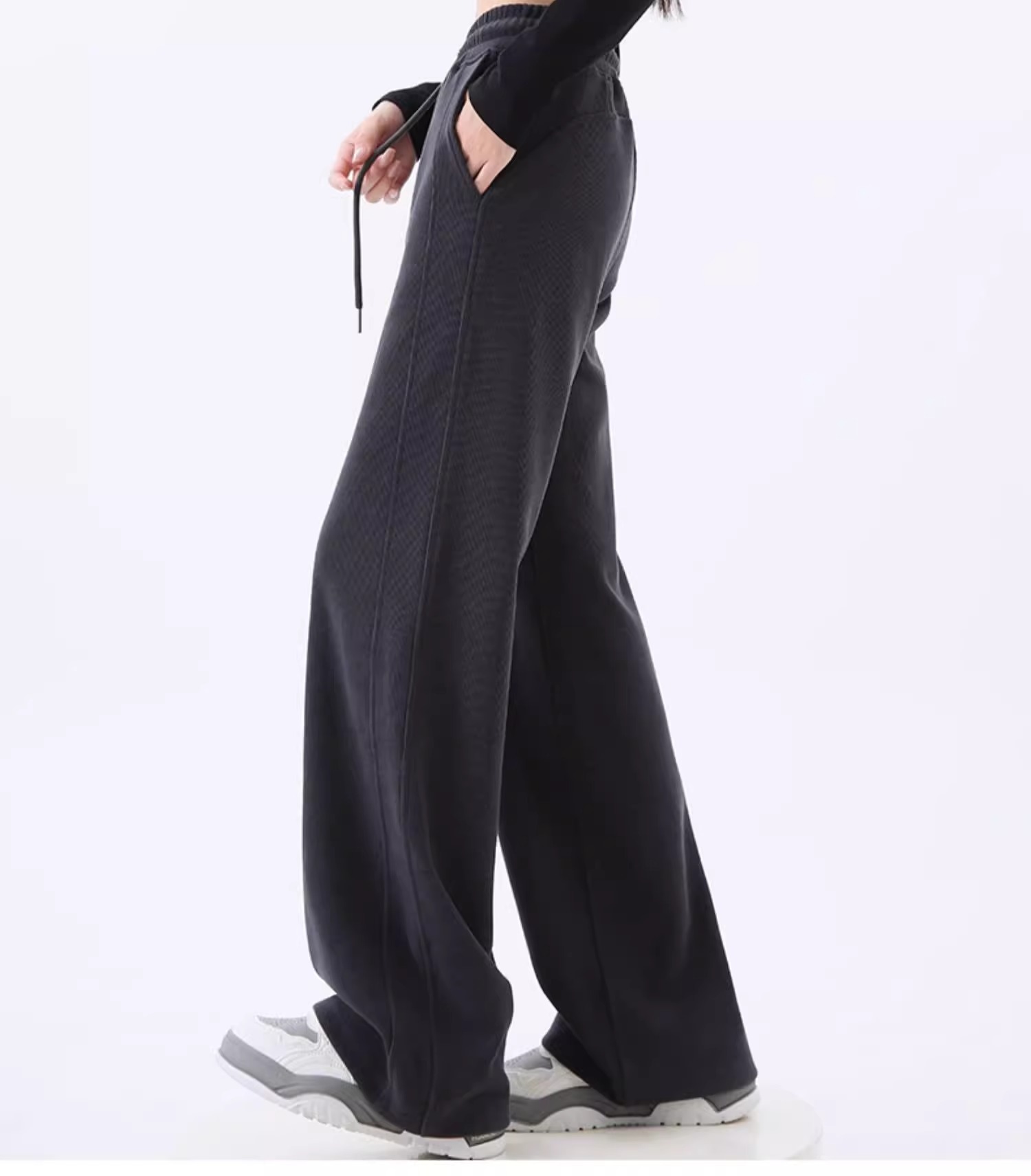 烏梅の紫色のスポーツのズボンの女性の春秋のベルベットの2025の新型のまっすぐな筒の狭い版の衛のズボンの高腰のバナナの広腿のズボン