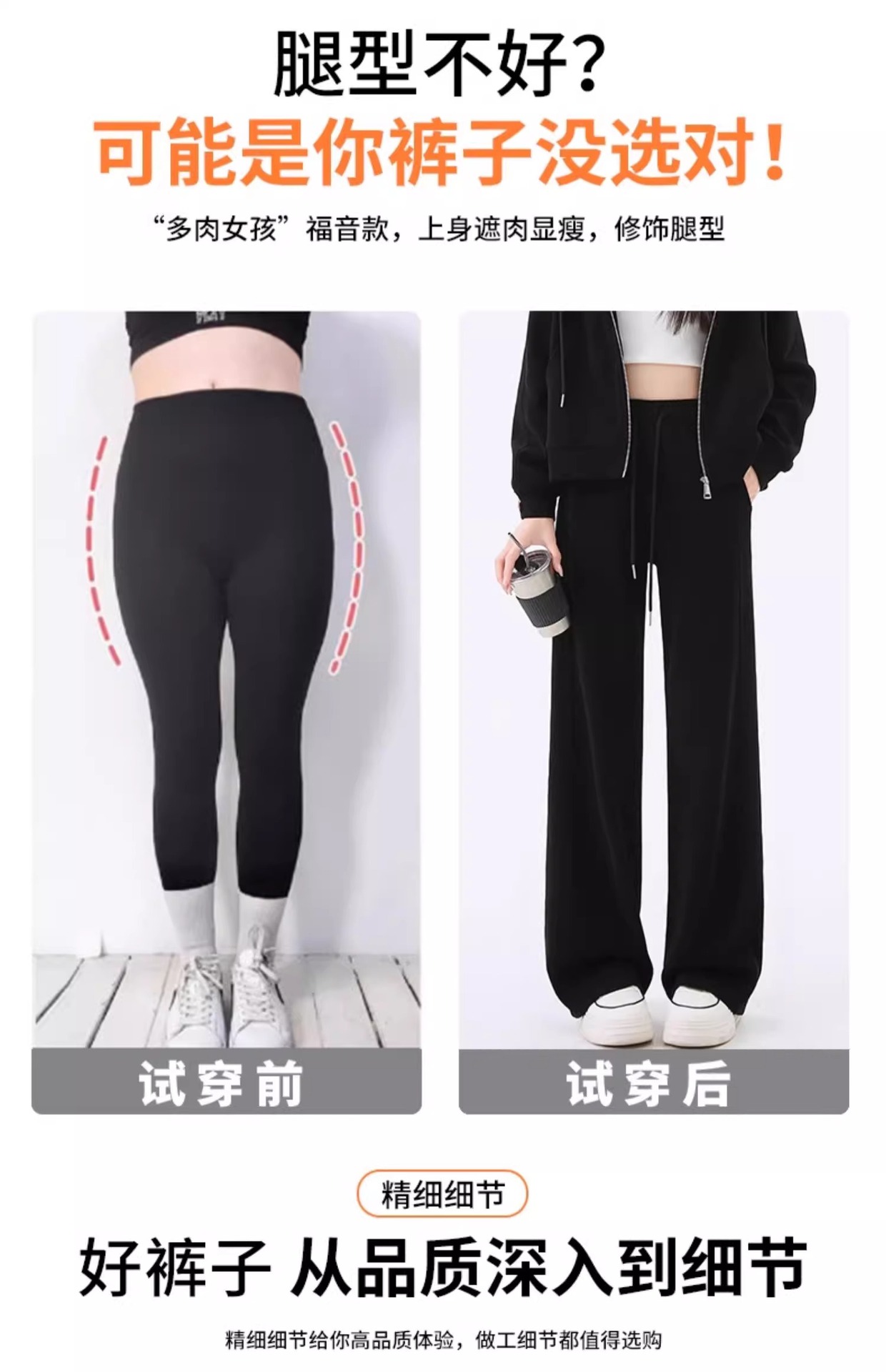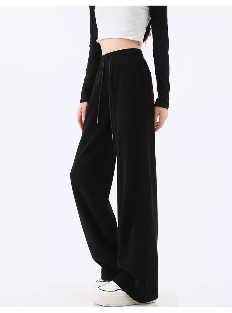黒のスウェットパンツの女性の春と秋のスタイルプラスベルベット 2025 新しいルーズレッグ大きいサイズ脂肪 mm 小さなカジュアルスウェットパンツ