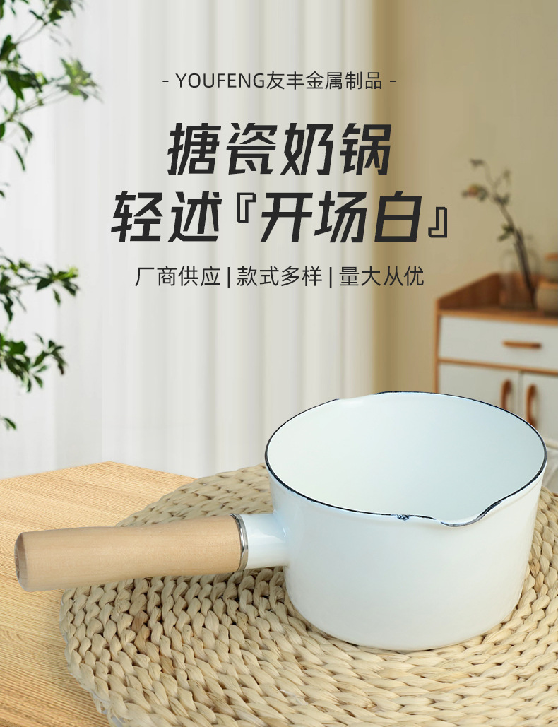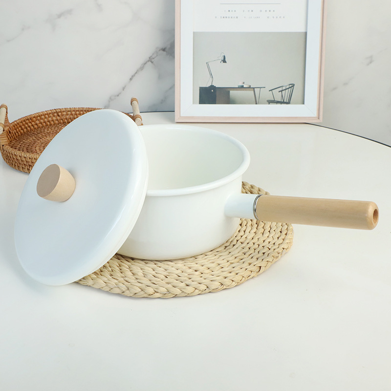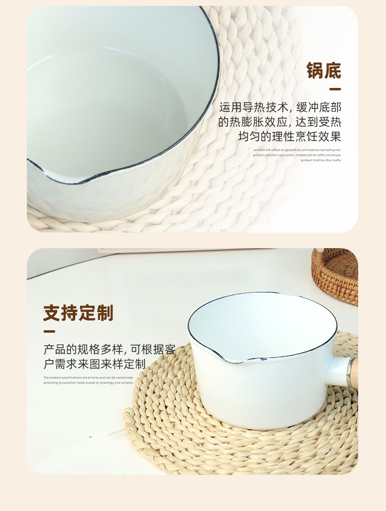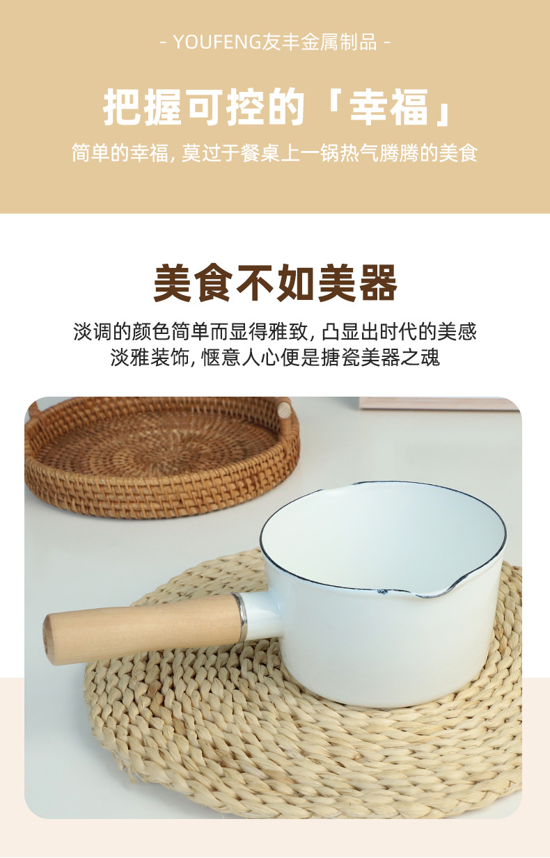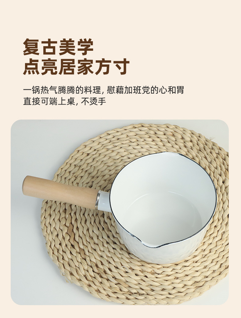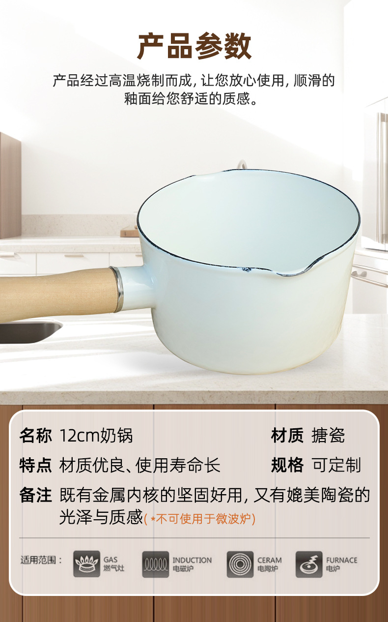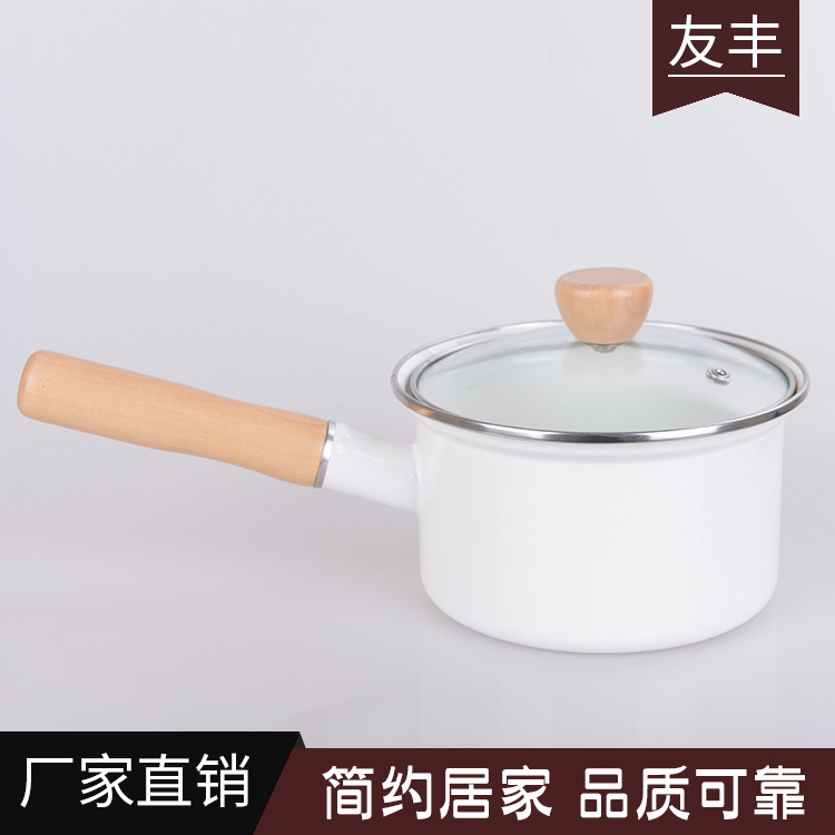 日式搪瓷奶锅 加厚珐琅小锅单柄锅 出口日本早餐锅泡面锅燃气通用
