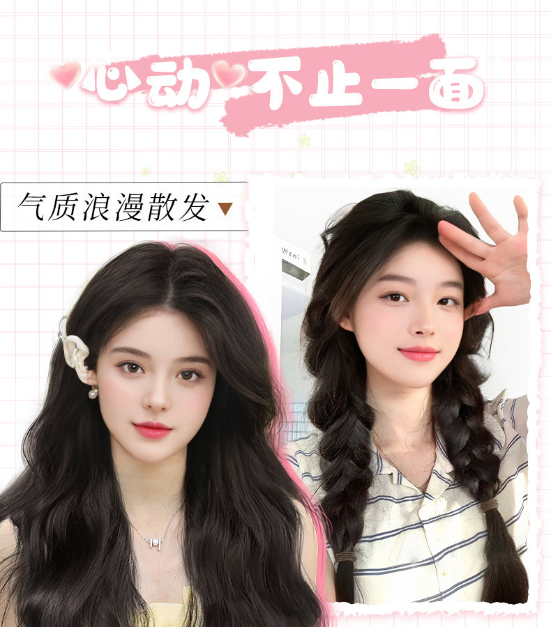 假发片女v型高层次微卷接发片贴女神之翼长直发增发量蓬松一片式