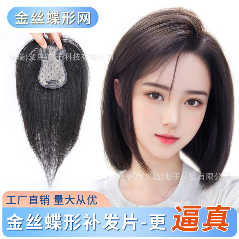 女性用スイスネット手織りウィッグ、頭頂部人工毛、自然で跡が残らないふわふわフレンチ前髪、軽くて薄いウィッグ