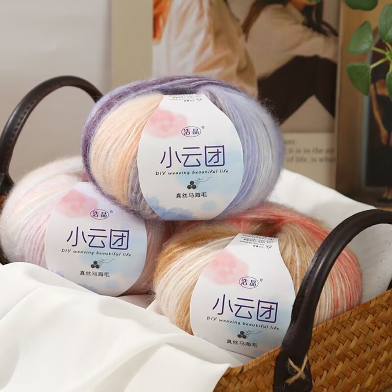 小云团真丝段染渐变色马海毛细线团手工编织DIY披肩毛衣材料包