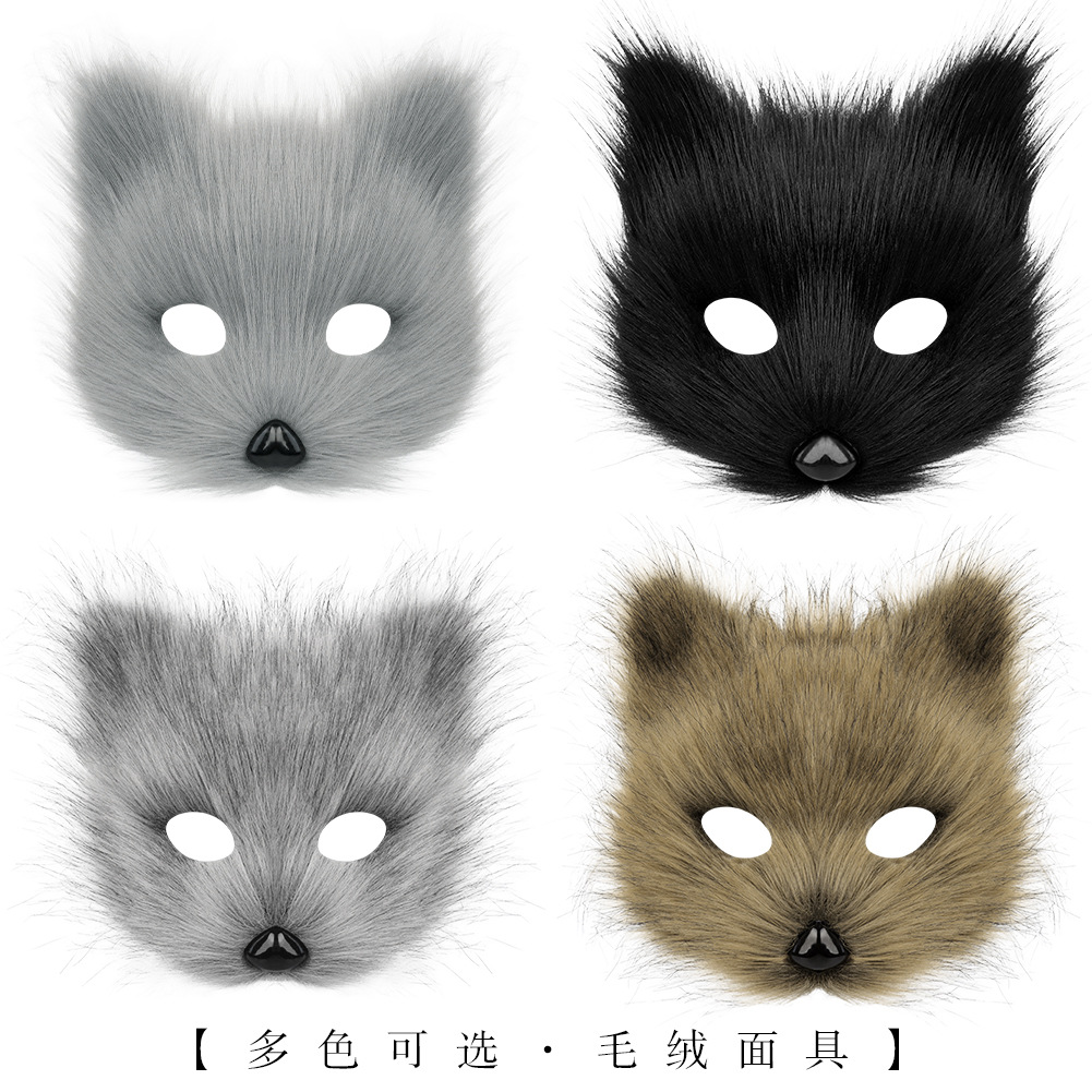 ハロウィンカーニバルファッション動物マスクバイキングキツネマスク偽毛頭飾りコスウルフマンマスク