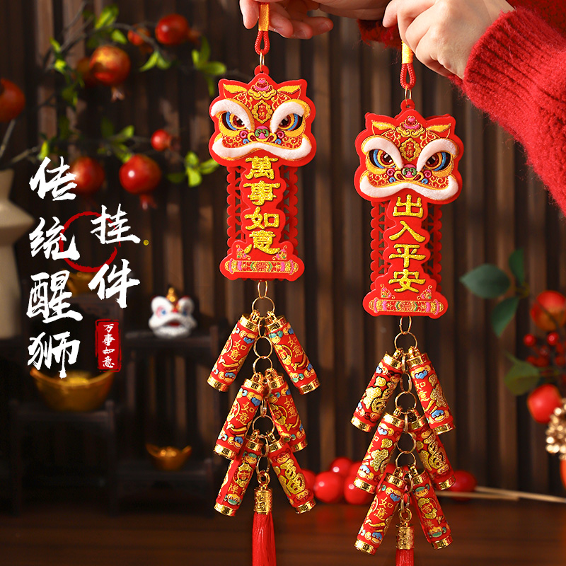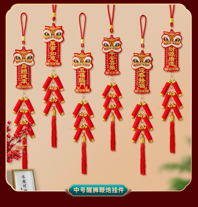 2026马年新款醒狮鞭炮挂串新年装饰品挂件春节喜庆挂饰年货布置品