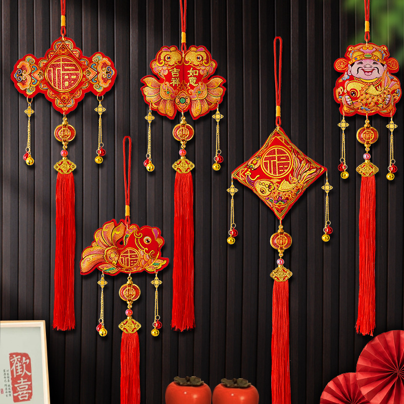 2026年新年春節福字提灯元旦室内リビングルームお祝い装飾馬年金箔ベルベット吊り下げ飾り