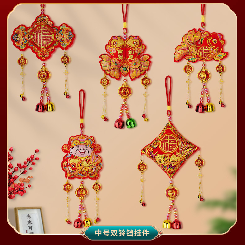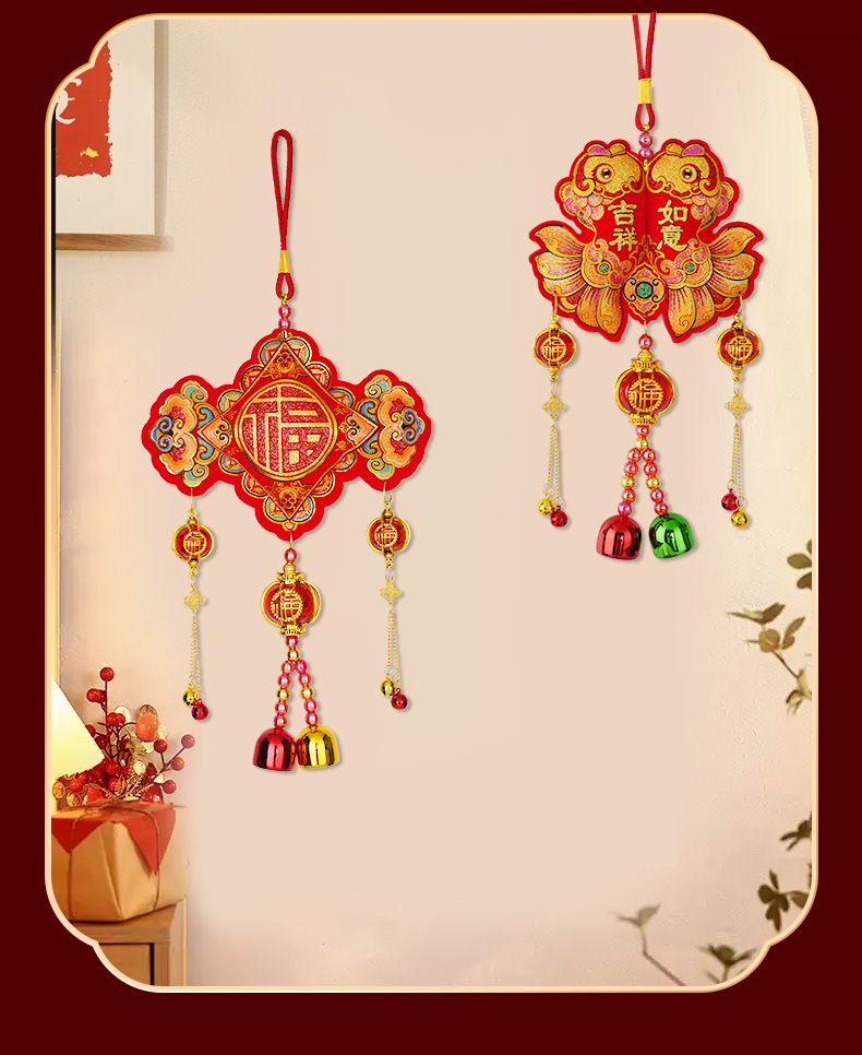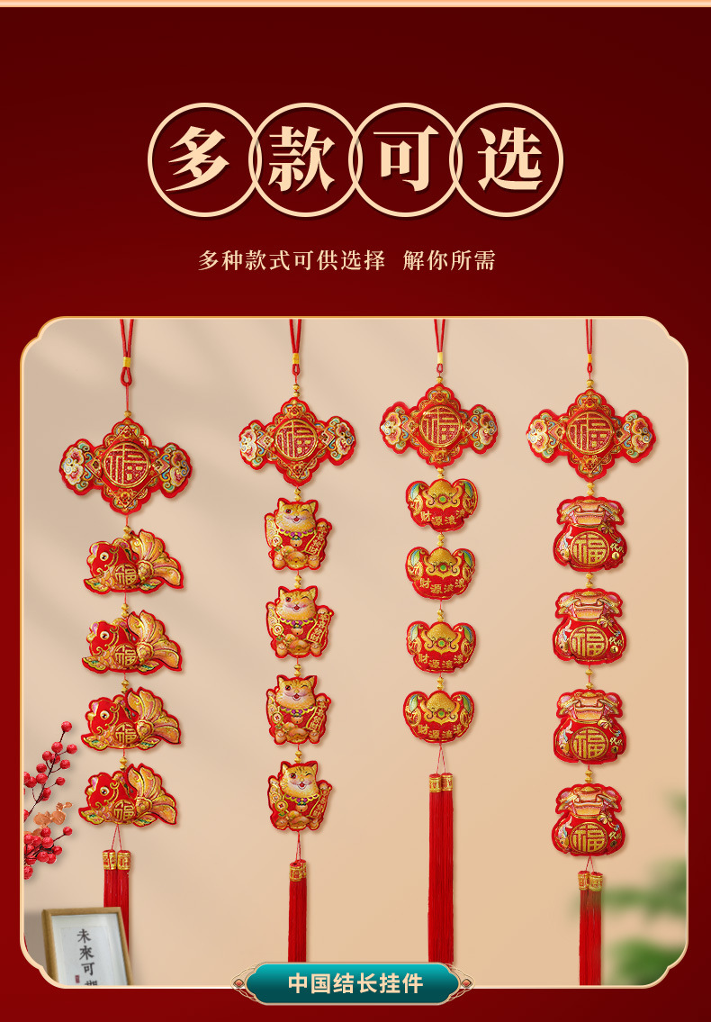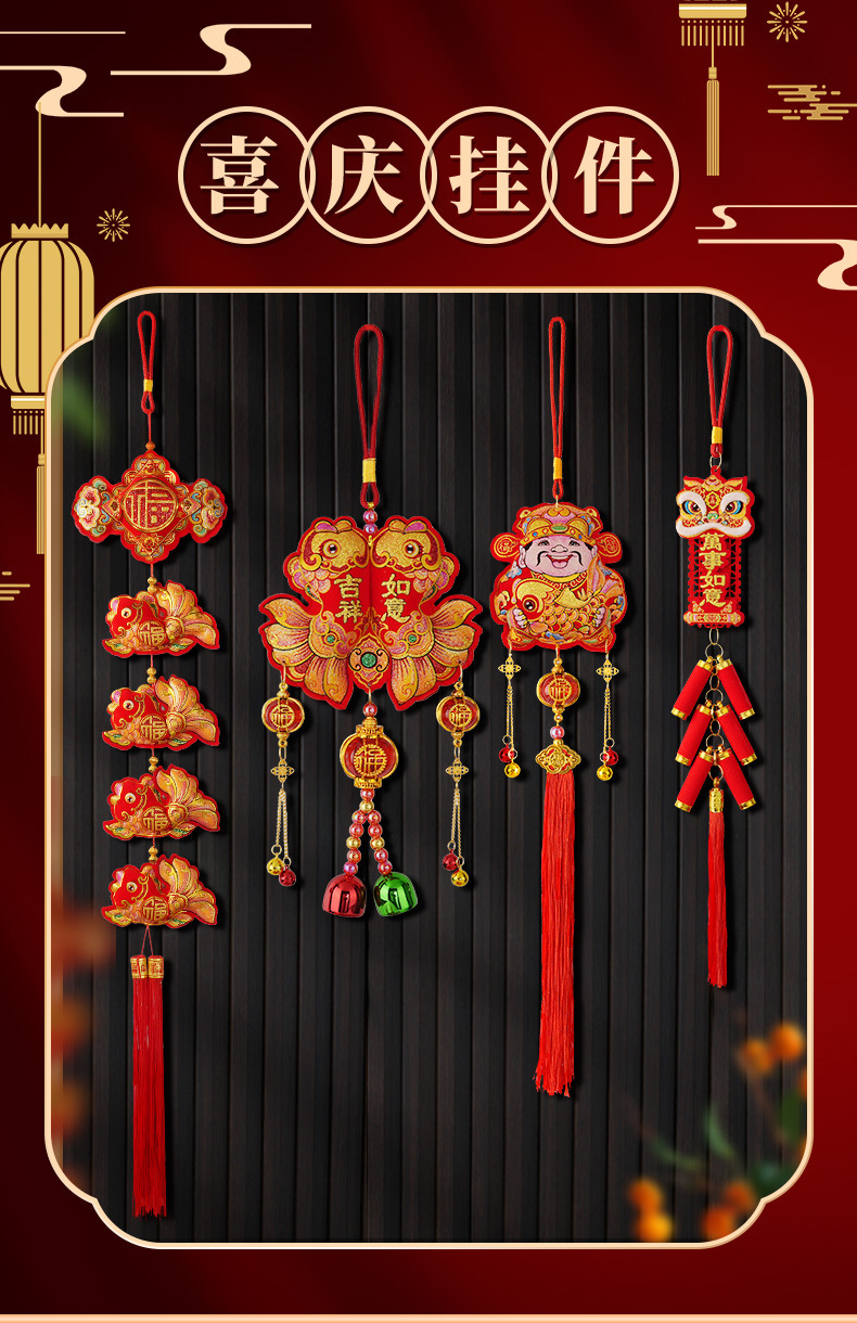 新款马年挂饰春节挂件锦鲤醒狮鞭炮弯鱼吊件过年布置装饰品中国结