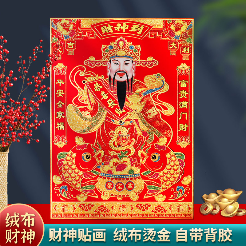 新年の綿布の財神の門はゴムを貼って自分で大きな財神にくっつきます。