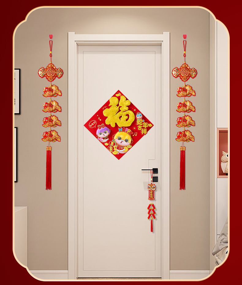 2026新年鞭炮门挂马年装饰品春节过年客厅醒狮挥春门口挂饰布置