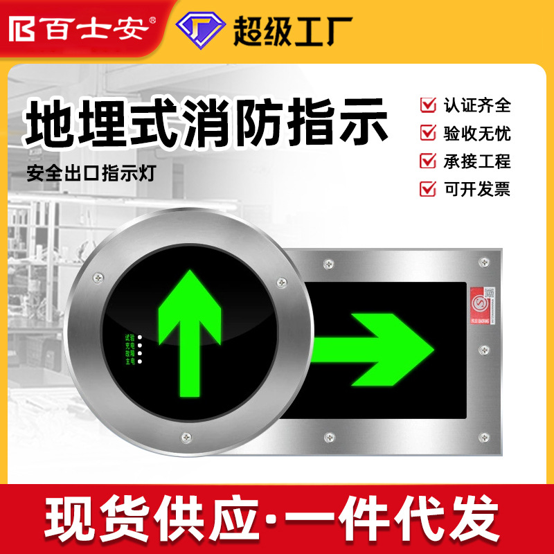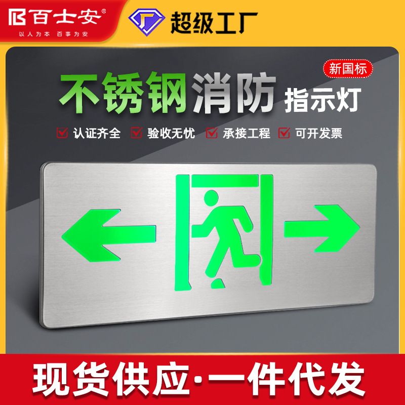百士安a型ステンレス超薄消防緊急表示灯フロア通路安全出口避難標識灯