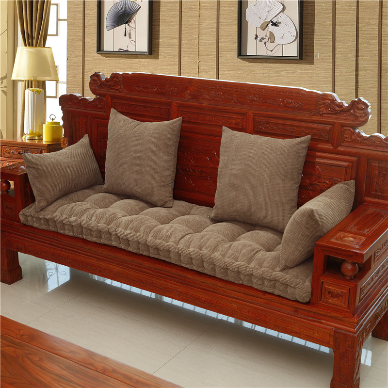 秋冬の四季の滑り止めを厚くした三人の連体亜麻の実の赤い木のソファーの座布団はスポンジの座布団を分解して洗うことができます。