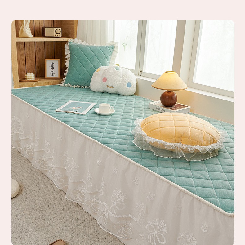 2025新品純色プリンセス風満天星ダブルスカート浮き窓マット四季通用滑り止めレースマット