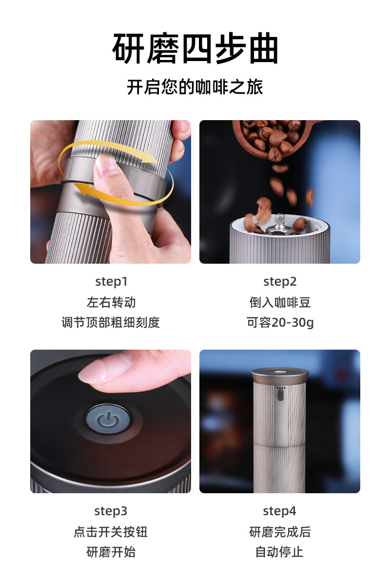 便携充电磨豆机电动咖啡磨豆机 合金不锈钢锥磨 防卡豆