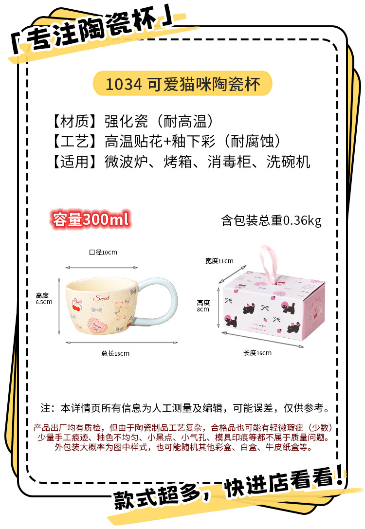 控价18.8元,300ml,贴花,强化瓷,可微波炉等,箱规49*44*40。装箱数60(-)重量0.36kg,尺寸16×11×8cm³