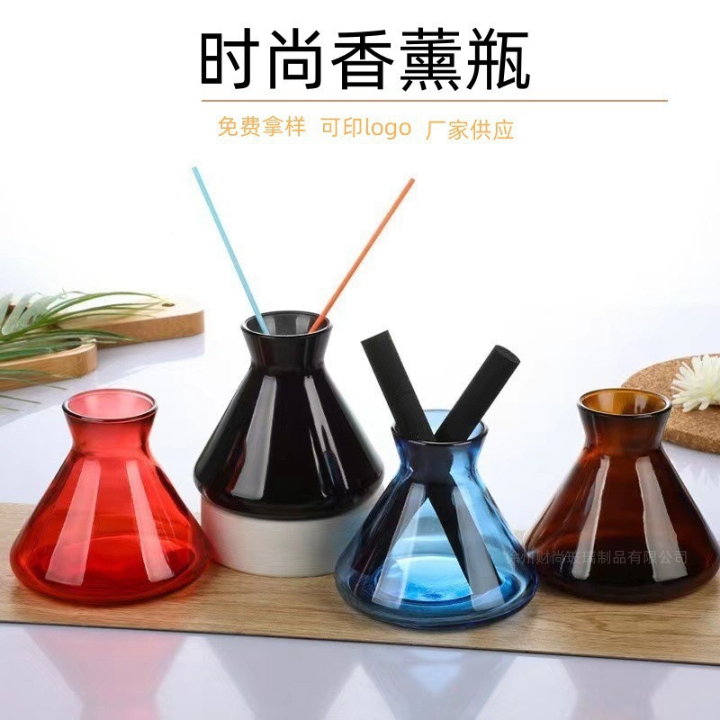 厂家批发250ml彩色香薰瓶喇叭口玻璃空瓶家用桌面香薰锥形扩香瓶