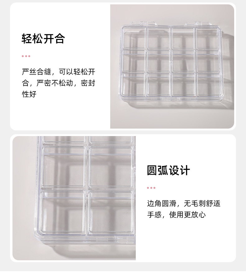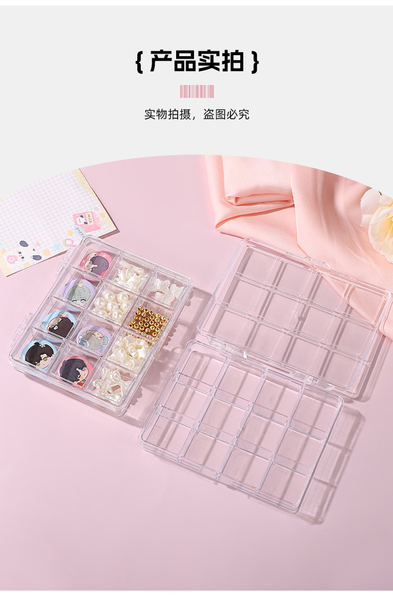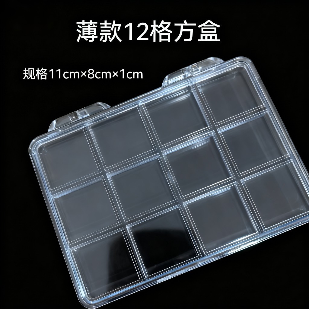 12格薄款美甲饰品透明分格收纳盒小饰品盒防尘盒批发空盒分格