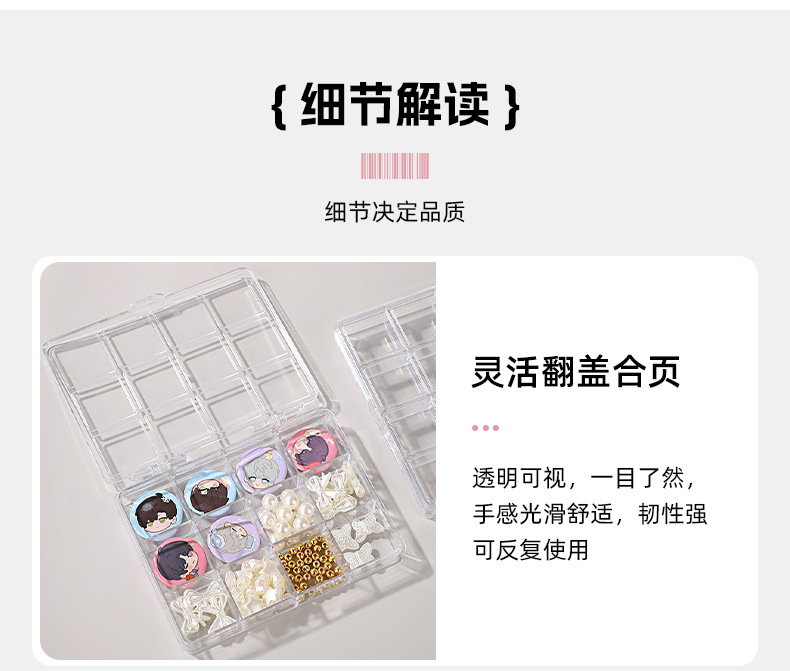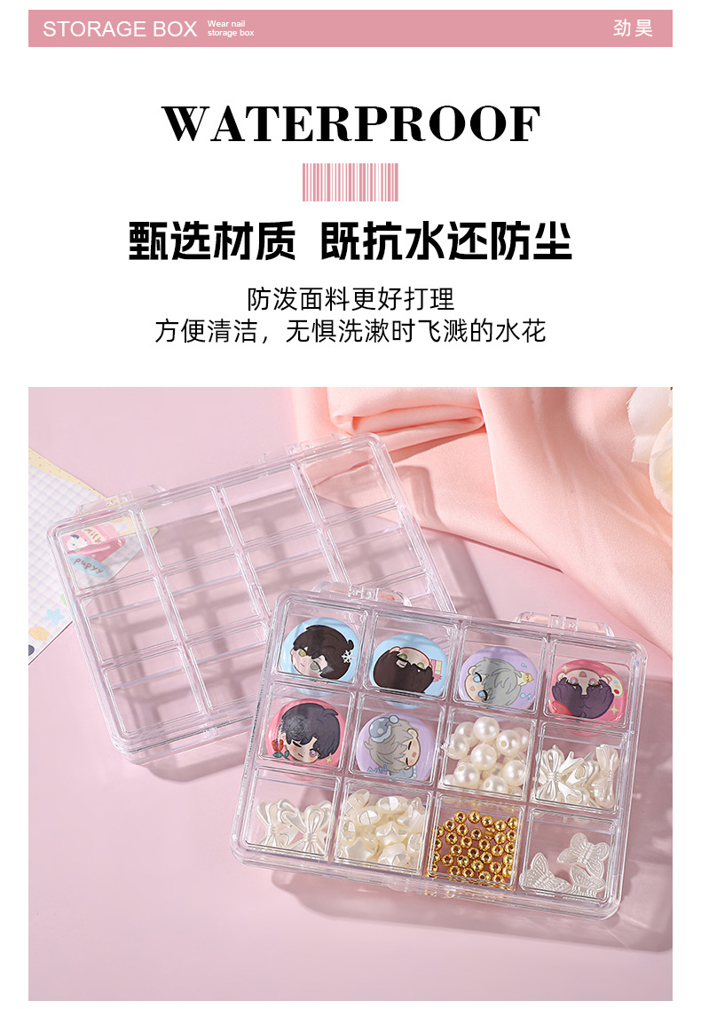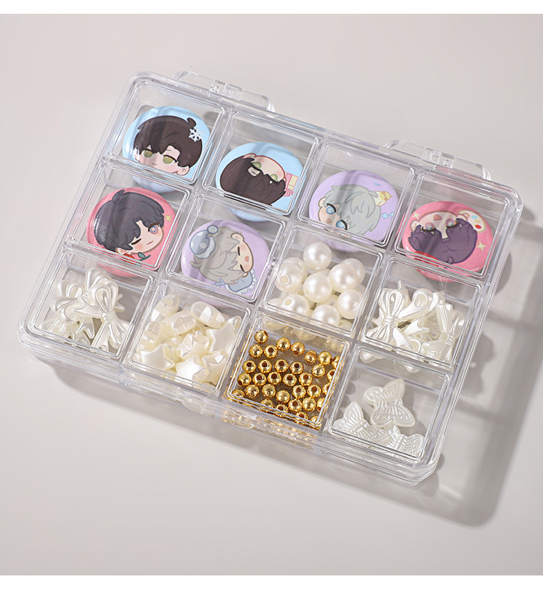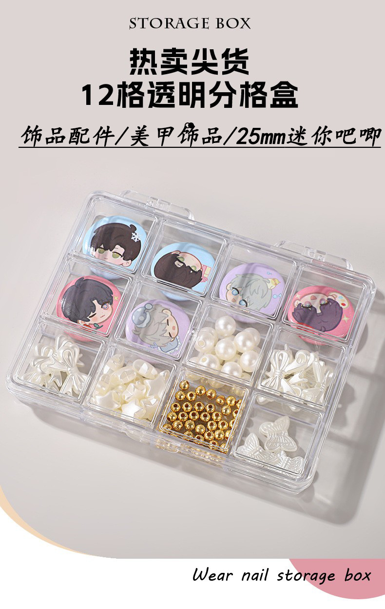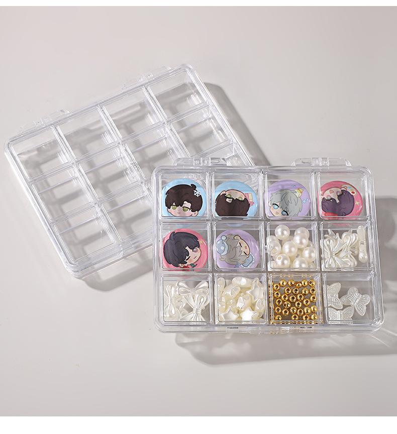 新作仕切り付きネイルアートジュエリー収納ボックス アニメ谷子保護PSプラスチックボックス 12グリッド パーツ/ビーズ/アクセサリー包装ボックス