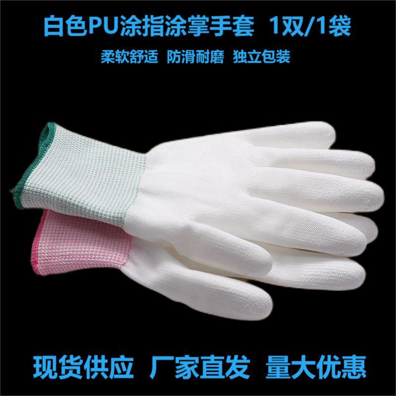 メーカー卸売り電子工場白色ナイロン労働保護手袋滑り止め耐摩耗性帯電防止PU塗装手袋