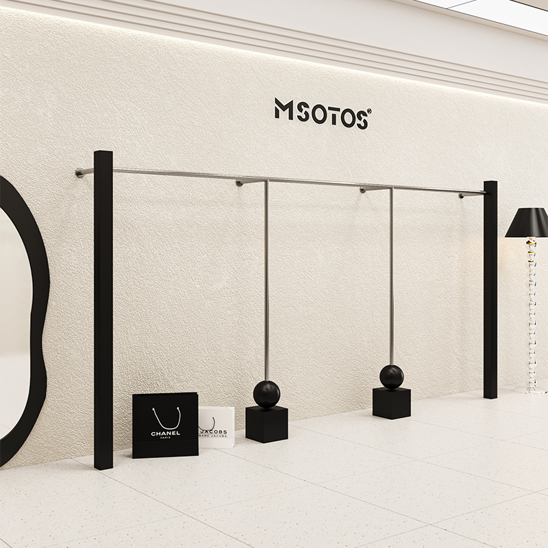 简约男女服装展示架哑光黑色上墙挂衣杆落地陈列架童装店专用货架