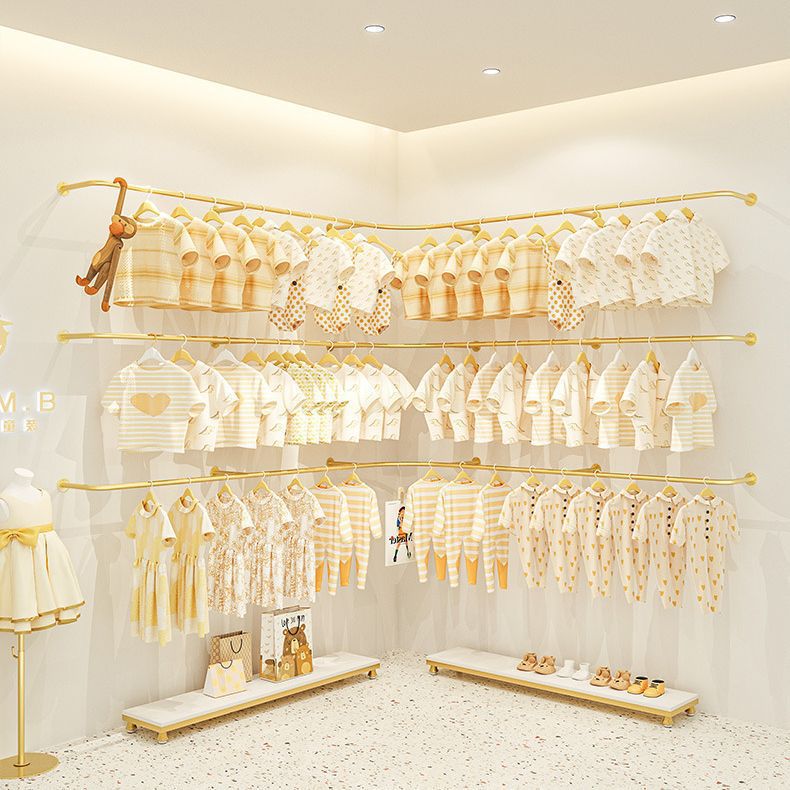 子供掛けハンガー洋服店展示棚童装店コーナー壁掛け棚壁面二、三階陳列棚
