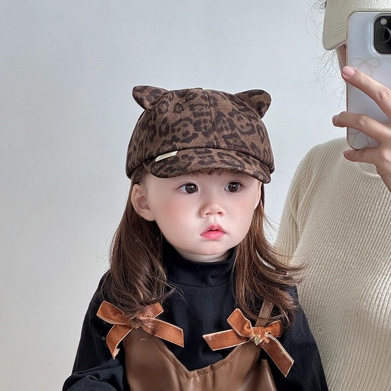 宝宝秋冬季洋气复古豹纹鸭舌帽男童女童潮酷时髦棒球帽韩版小孩帽