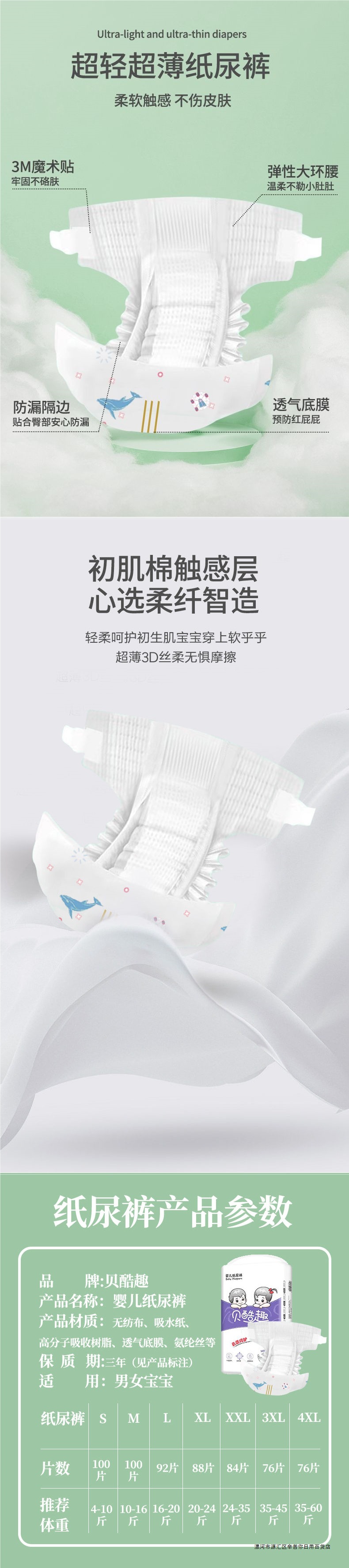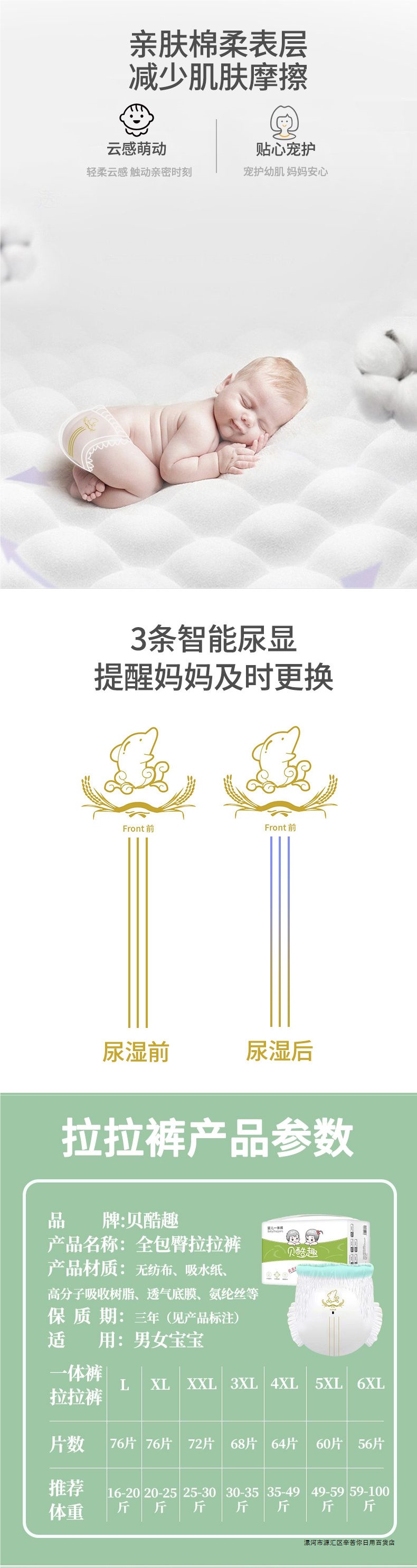 规格 一体裤L码38片16-20斤,一体裤L码76片16-20斤,一体裤XL码38片20-25斤,一体裤XL码76片20-25斤,一体裤XXL码36片25-30斤,一体裤XXL码72片25-30斤,一体裤3XL码34片30-35斤,一体裤3XL码68片30-35斤,一体裤4XL码32片35-49斤,一体裤4XL码64片35-49斤,一体裤5XL码30片49-59斤,一体裤5XL码60片49-59斤,一体裤6XL码28片59-100斤,一体裤6XL码56片59-100斤,一体裤7XL码20片:90-120斤,一体裤7XL码40片:90-120斤,(新生儿)纸尿裤NB码50片,(新生儿)纸尿裤NB码100片,纸尿裤S码50片6-10斤,纸尿裤S码100片6-10斤,纸尿裤M码50片10-16斤,纸尿裤M码100片10-16斤,纸尿裤L码46片16-20斤,纸尿裤L码92片16-20斤,纸尿裤XL码44片20-26斤,纸尿裤XL码88片20-26斤,纸尿裤XXL码42片26-34斤,纸尿裤XXL码84片26-34斤,纸尿裤3XL码38片35-45斤,纸尿裤3XL码76片35-45斤,纸尿裤4XL码38片35-60斤,纸尿裤4XL码76片35-60斤,一体裤6XL 试用装10片