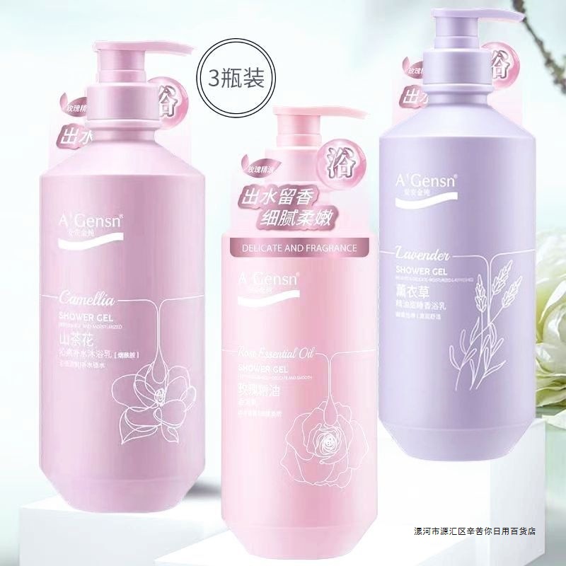 安安金纯750ml玫瑰精油香浴乳薰衣草山茶花沐浴露爽肤持久留香家