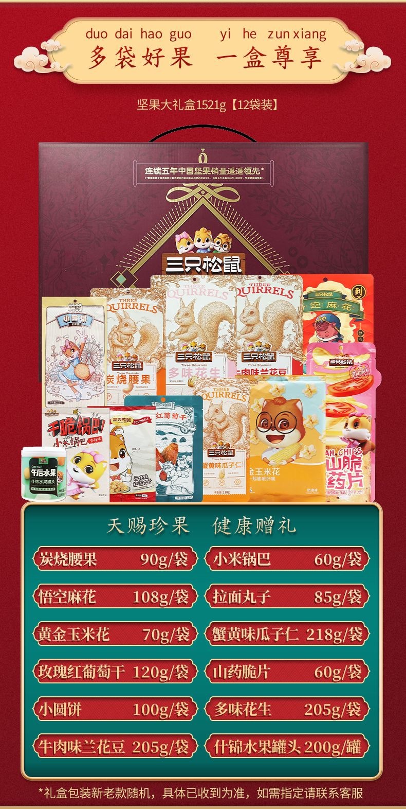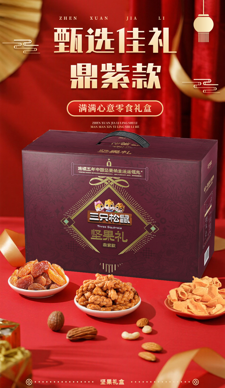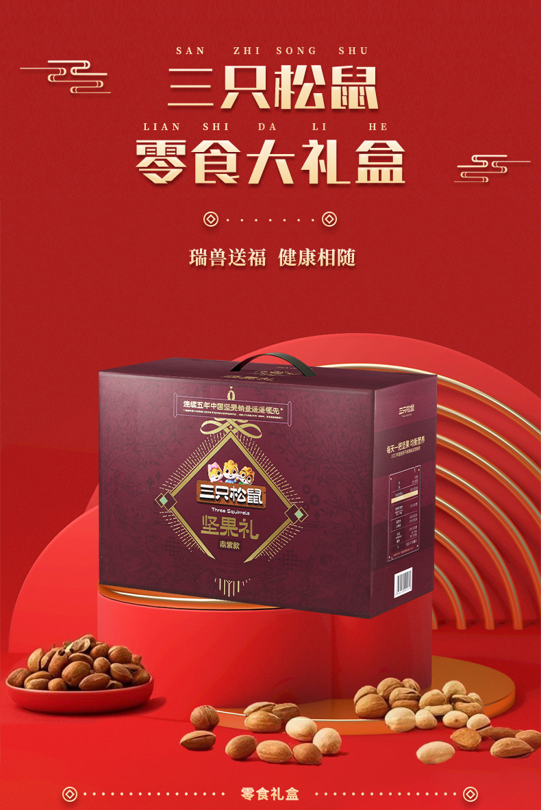 三只松鼠瑞红款坚果礼盒1501g/12袋健康果每日坚果干果大礼包包邮