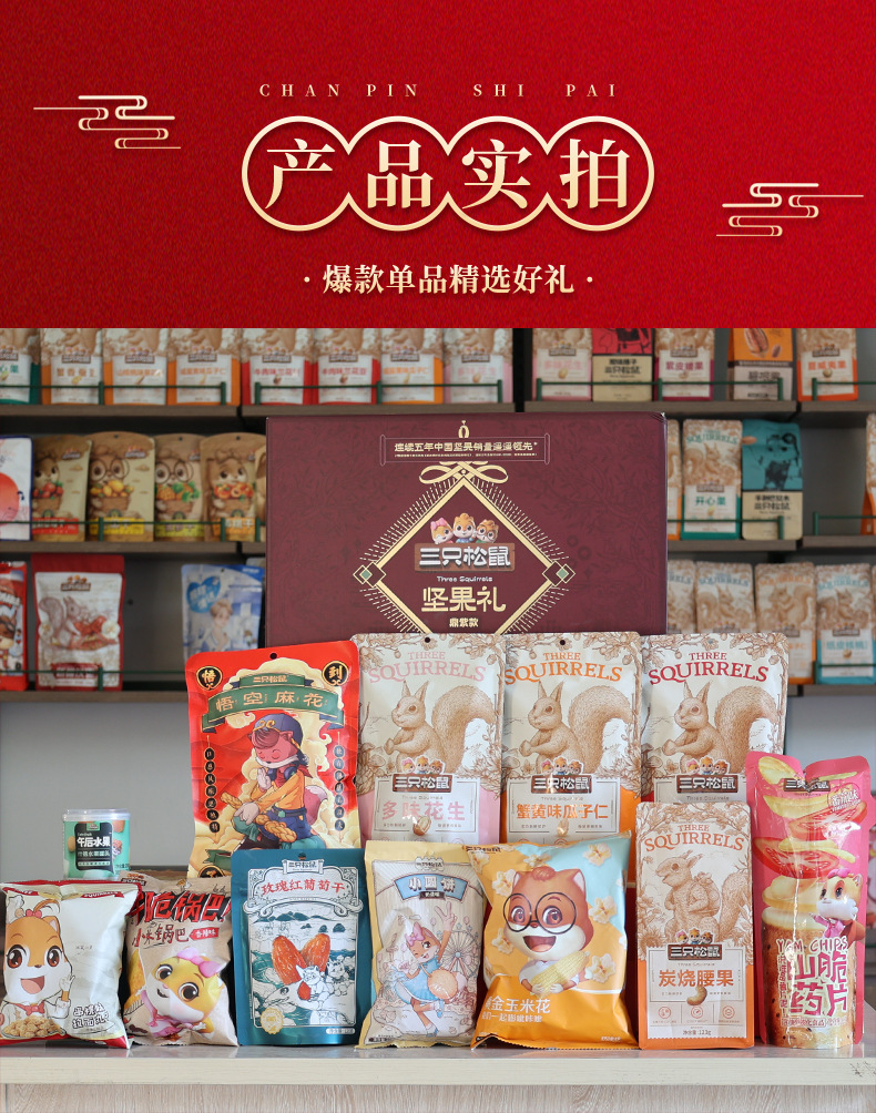 リスナッツ三匹の大礼箱国紫金1875g/15袋混合間食大ギフトバッグ