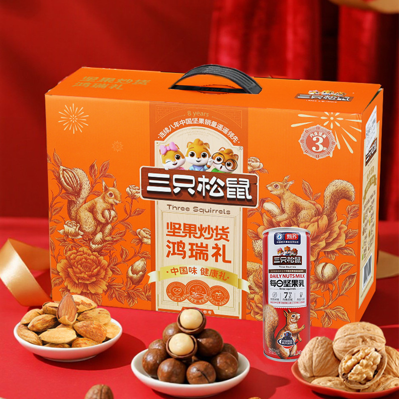 リスナッツ三匹大礼箱1508g/12袋混合間食大ギフトバッグ祝日プレゼントナッツ箱