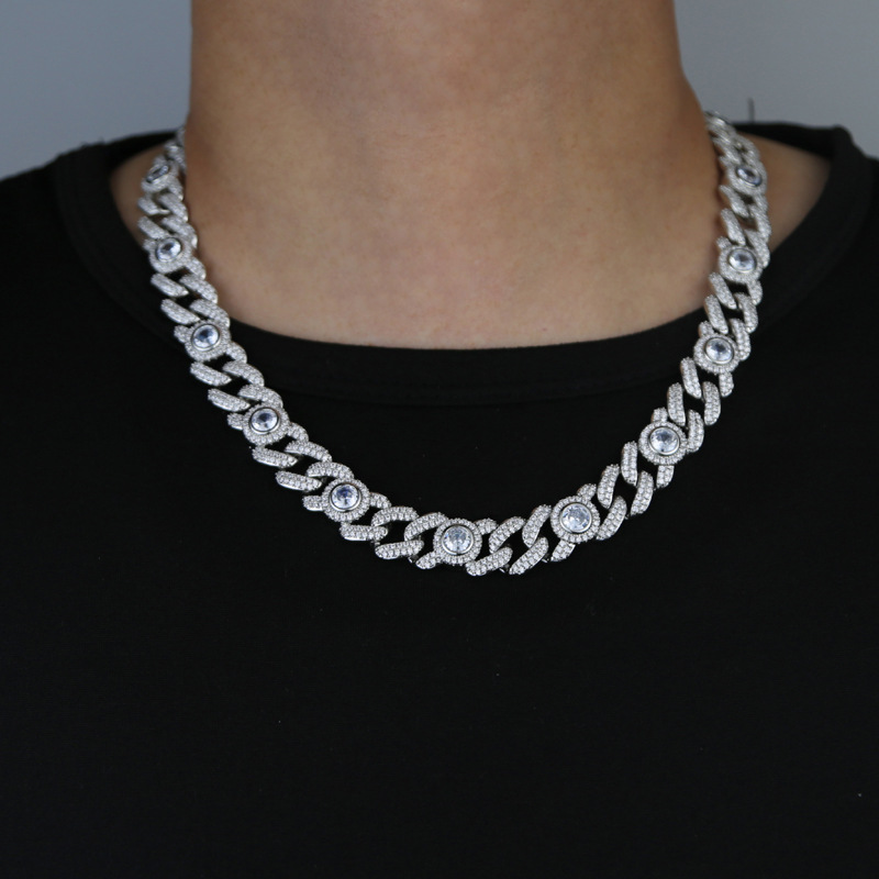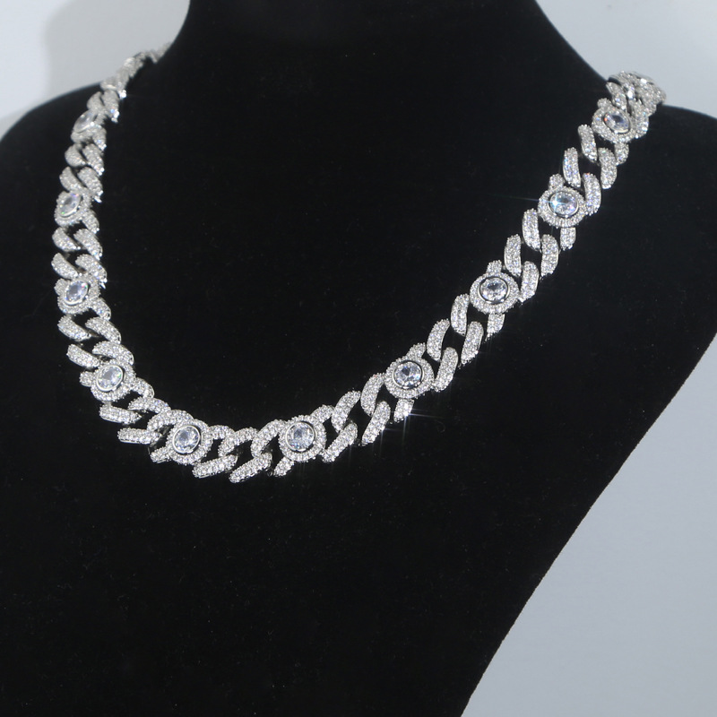 欧米のヒップホップメンズネックレス装飾品高級感光面12mm無限クロススプリングバックル夏ネックレス