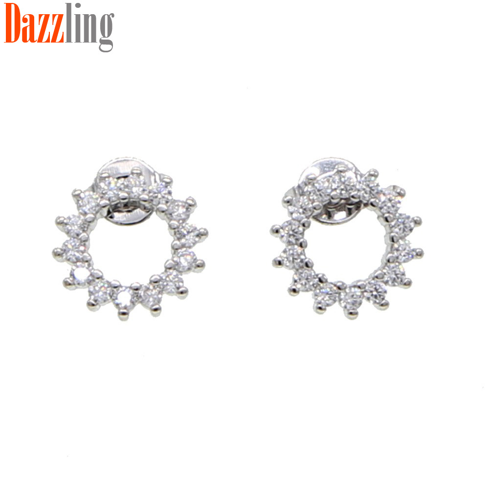 925銀透かし彫り円形ジルコンピアス女性シンプル個性太陽花イヤリングアクセサリー現物代発