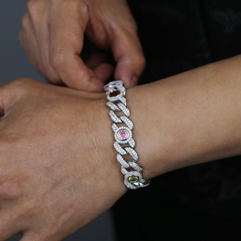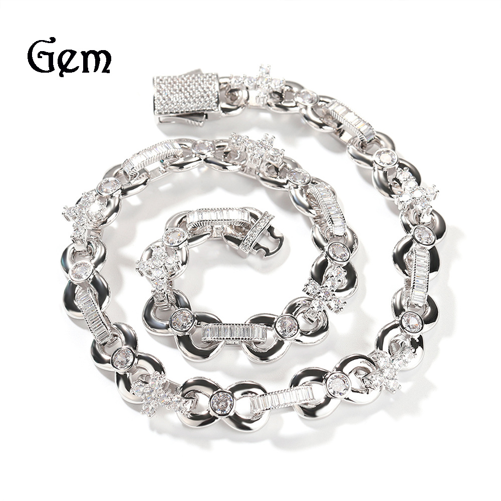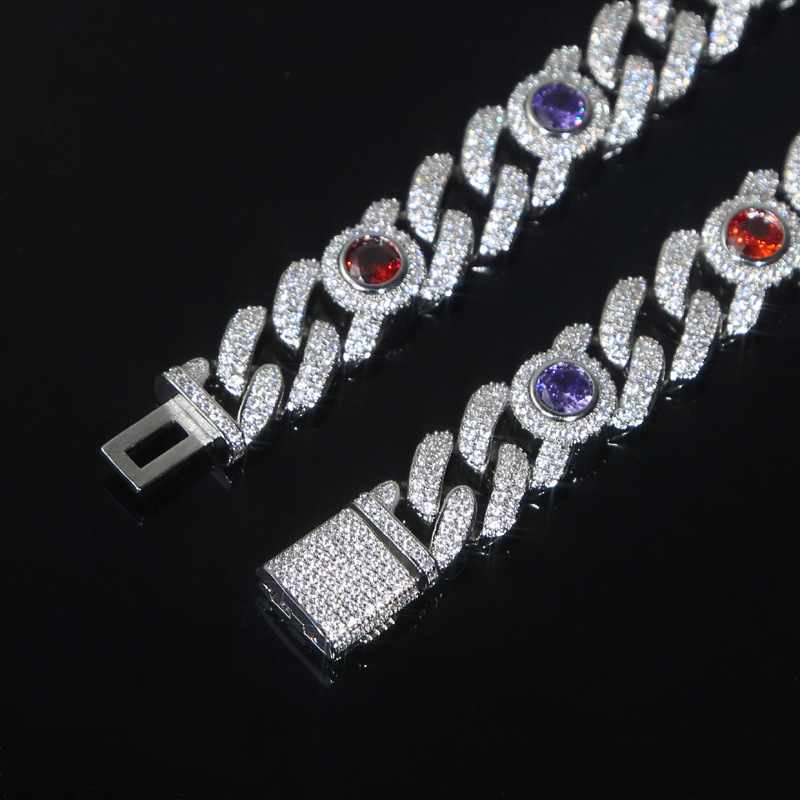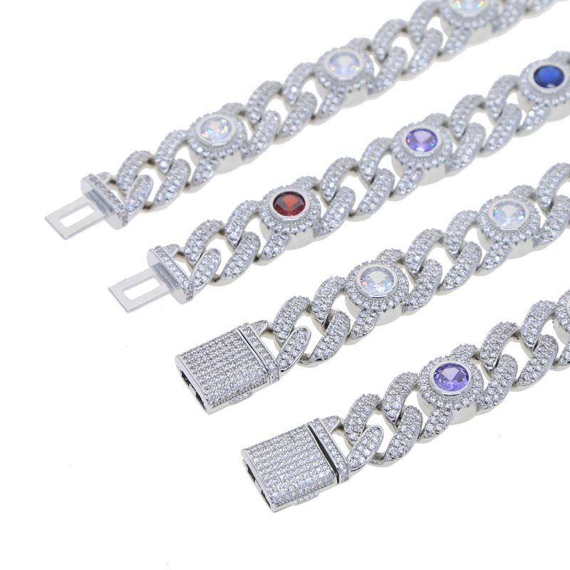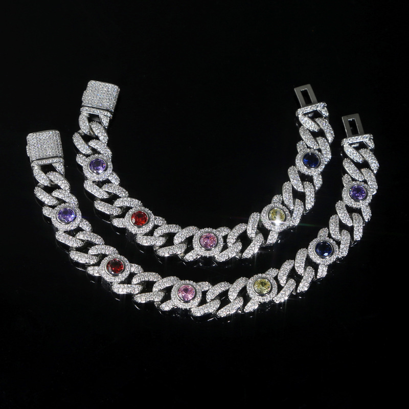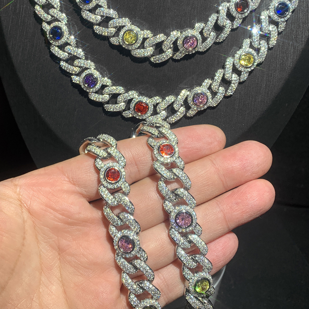 外国貿易の新しいヒップホップのジルコンのスキューバチェーンのブレスレットのネックレスのカラー円のジルコンのhioshopの越境のアクセサリの卸売りの潮