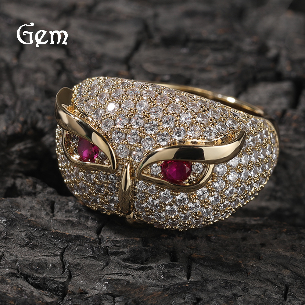 欧米の越境創意フクロウの指輪ヒップホップの個性銅は5Aジルコンの動物の指輪の潮流をはめて卸売りを飾ります。