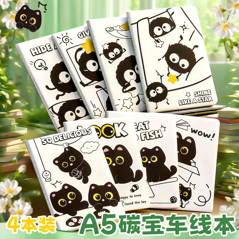 黑猫超萌A5车线本子logo印刷创意小学生文具用品记事本笔记本批发