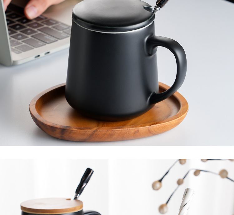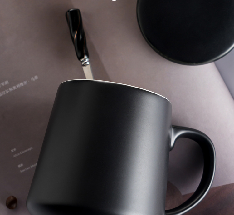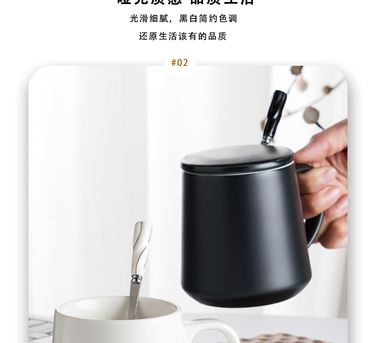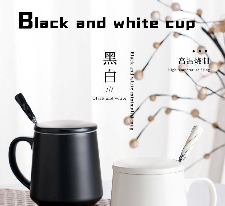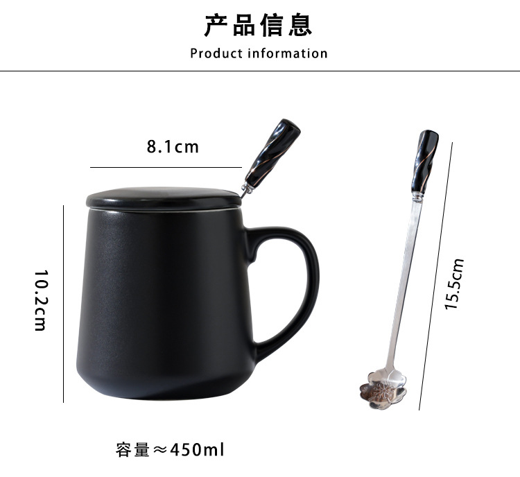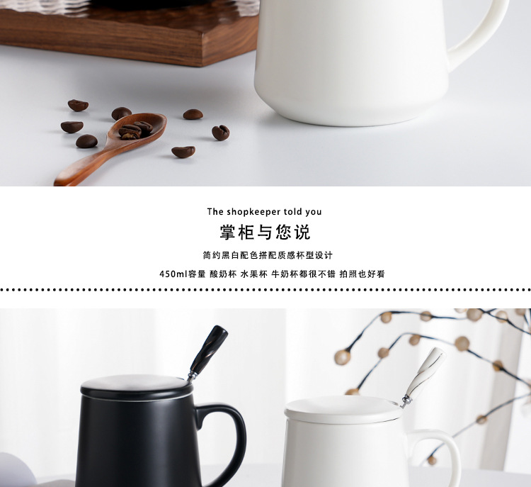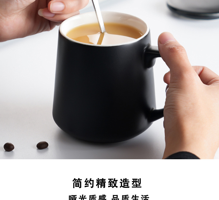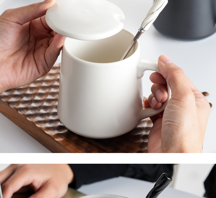 シンプルなマグカップコーヒーカップ蓋付きスプーン付きセラミックカップカップルカップ女性オフィスカップ男性家庭用