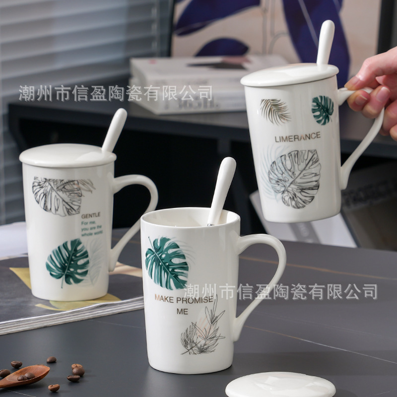 高颜値陶磁器コップ蓋付きスプーン付き家庭用マグカップ高温オフィス小清新シンプル風コップ