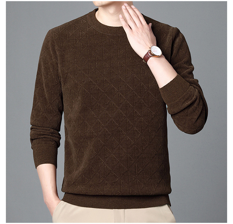 冬の男性のセーターの中で青年のベルベットの厚い百合の上着のお父さんは男性のシェニールの底のシャツのtシャツを詰めます。