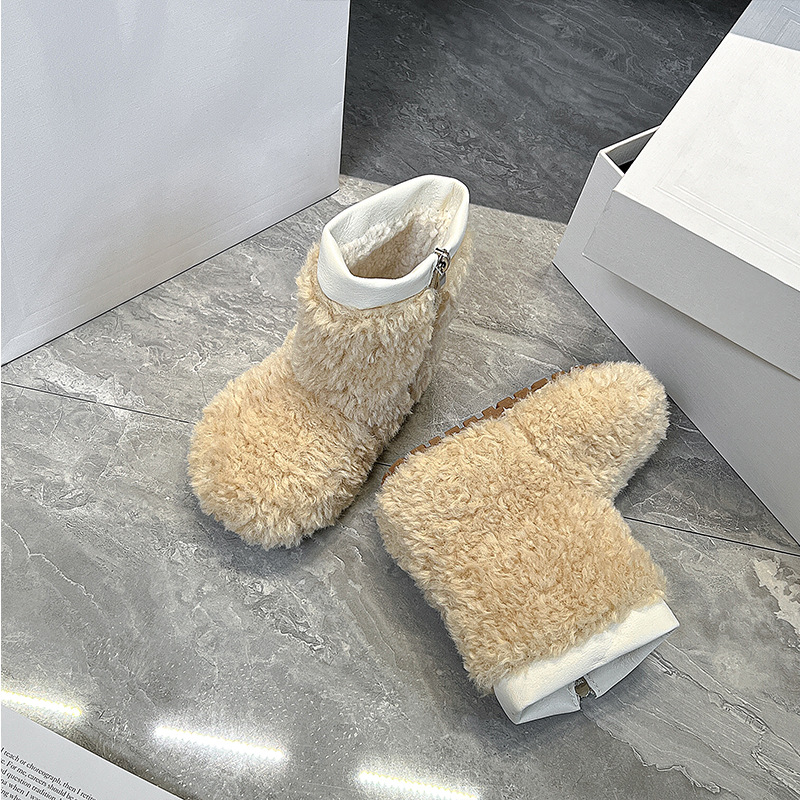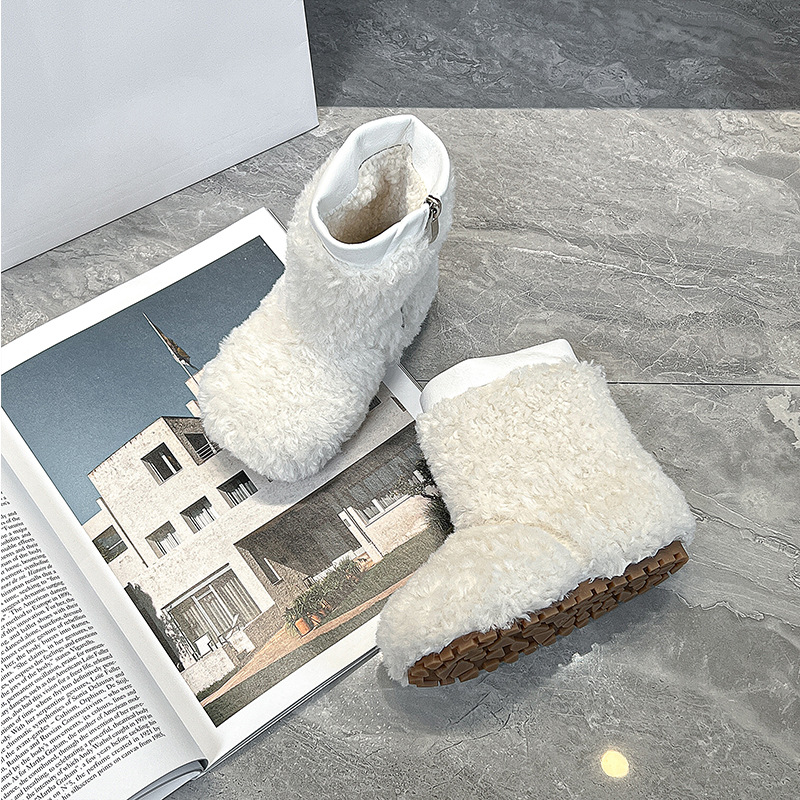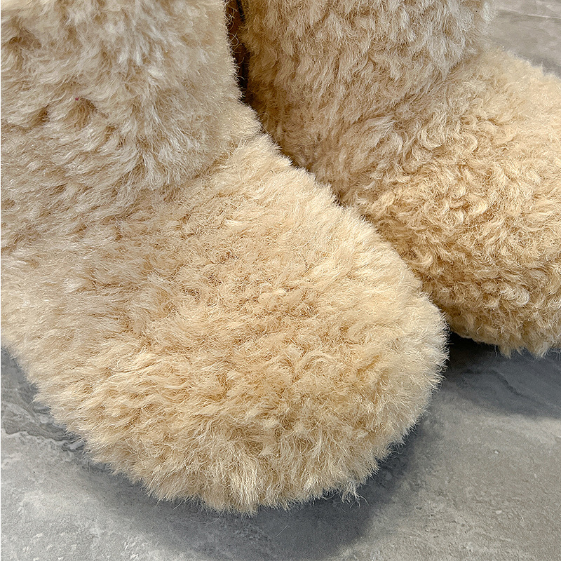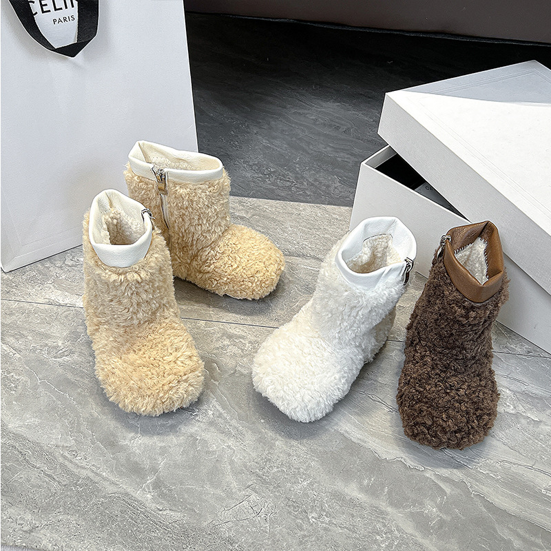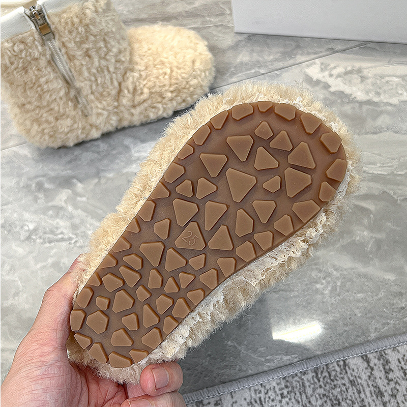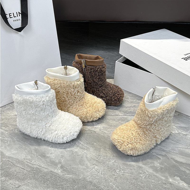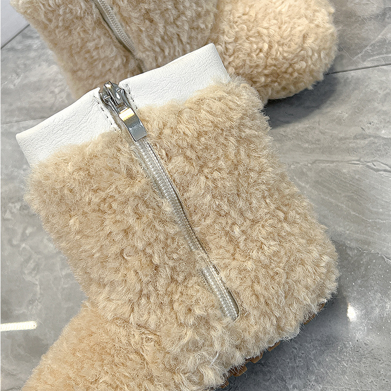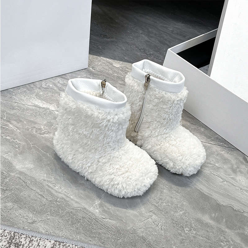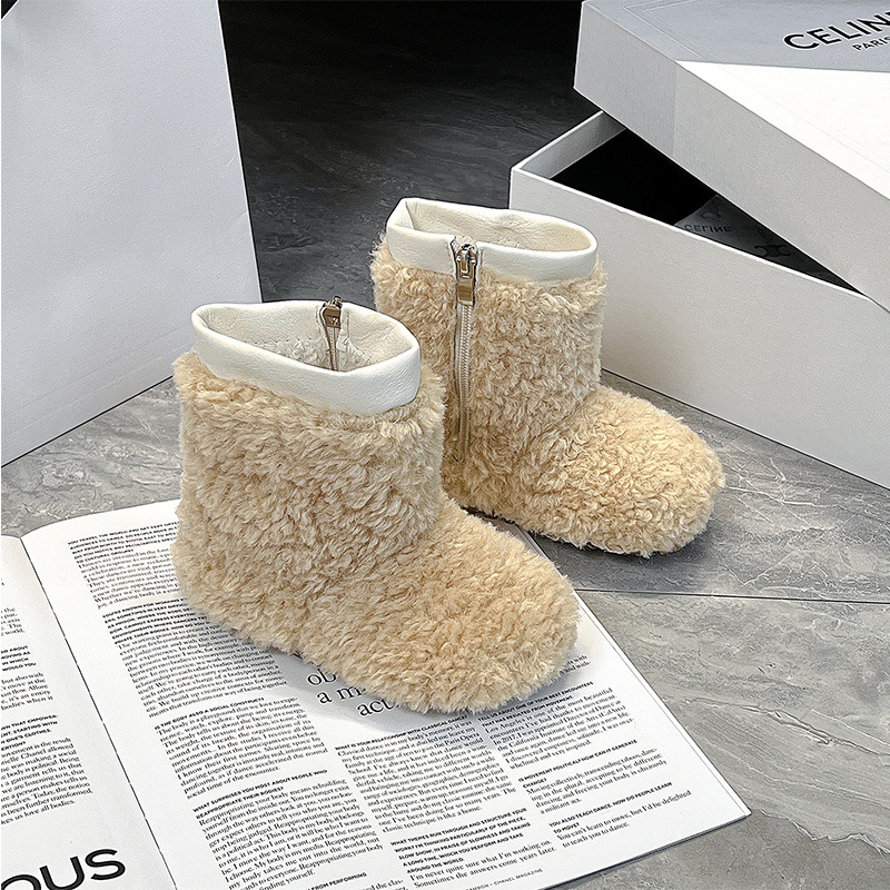 韩国雪地靴毛毛外穿中筒靴侧拉链加绒保暖毛毛鞋女童羊羔毛短靴软