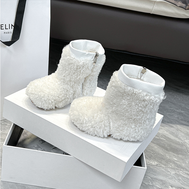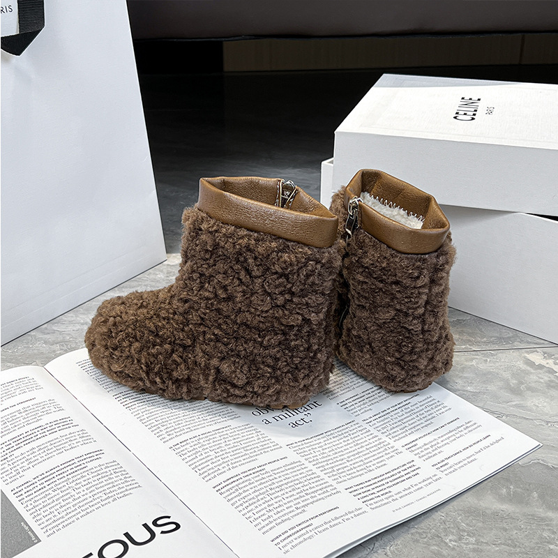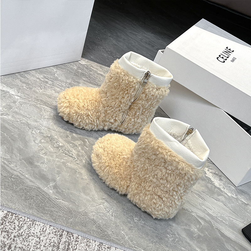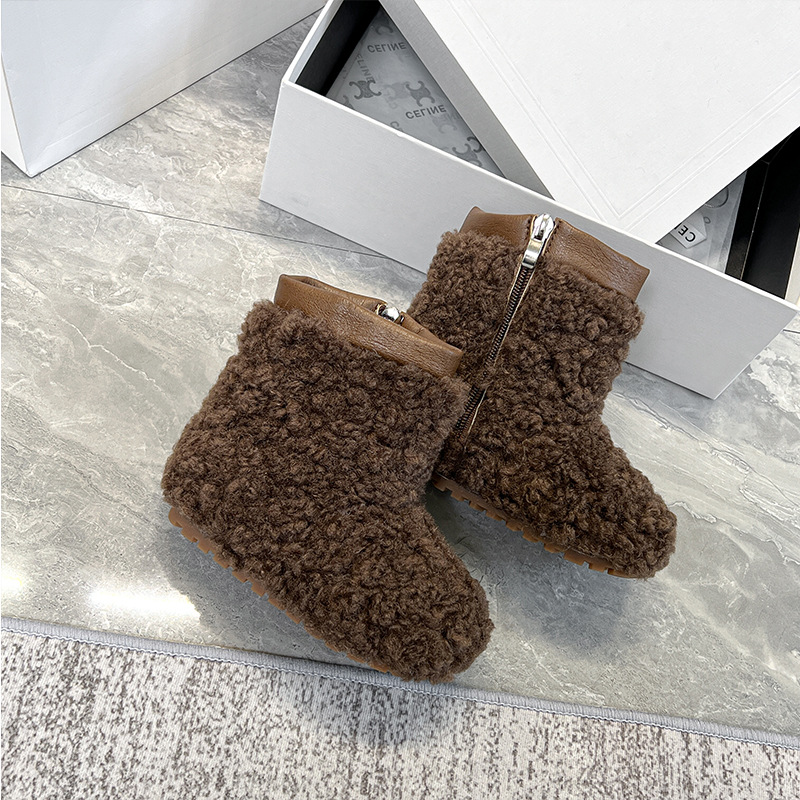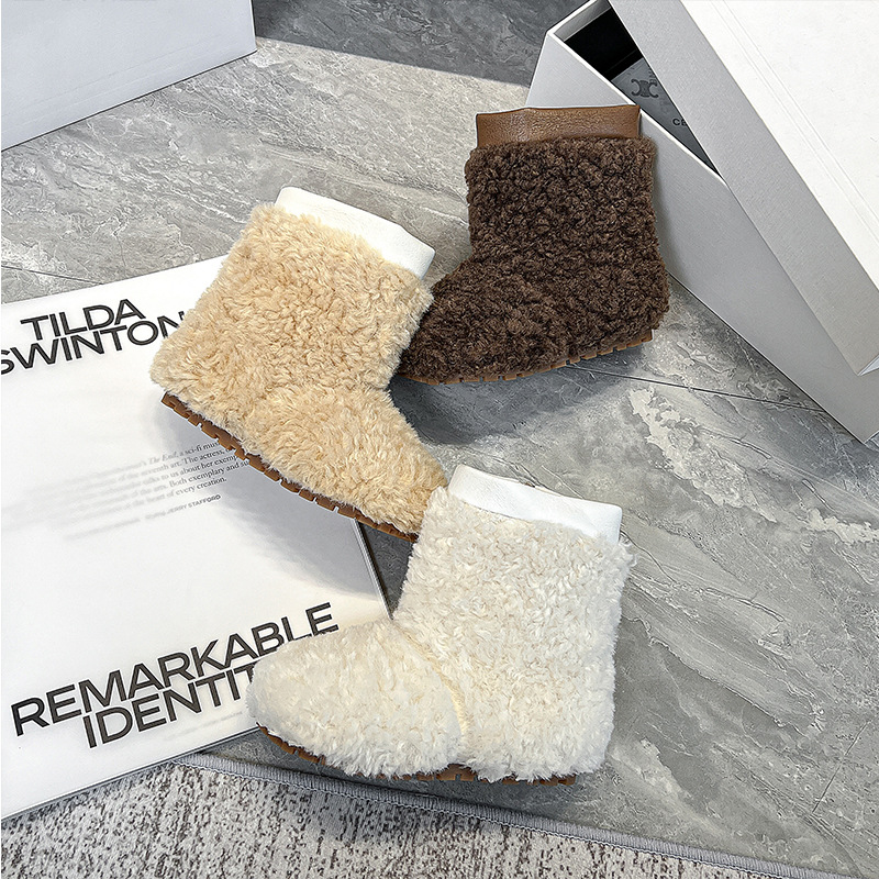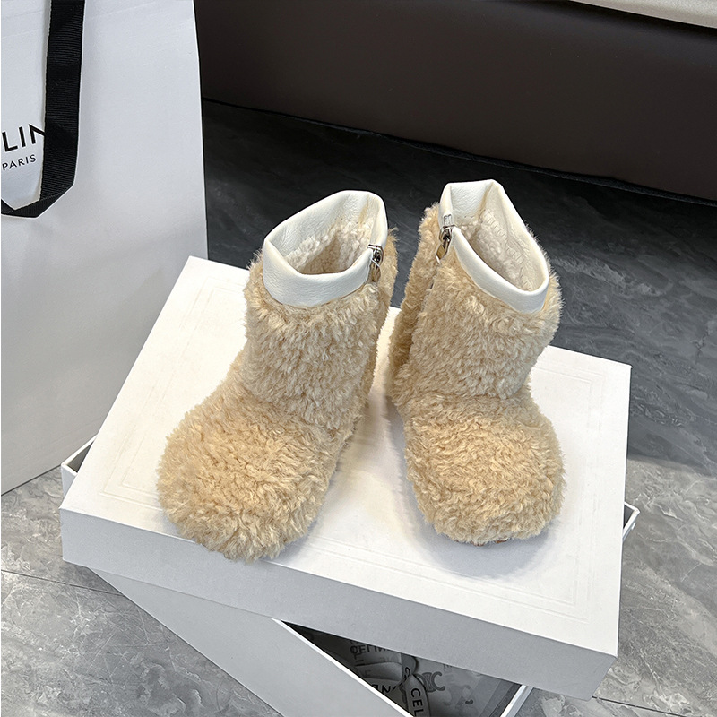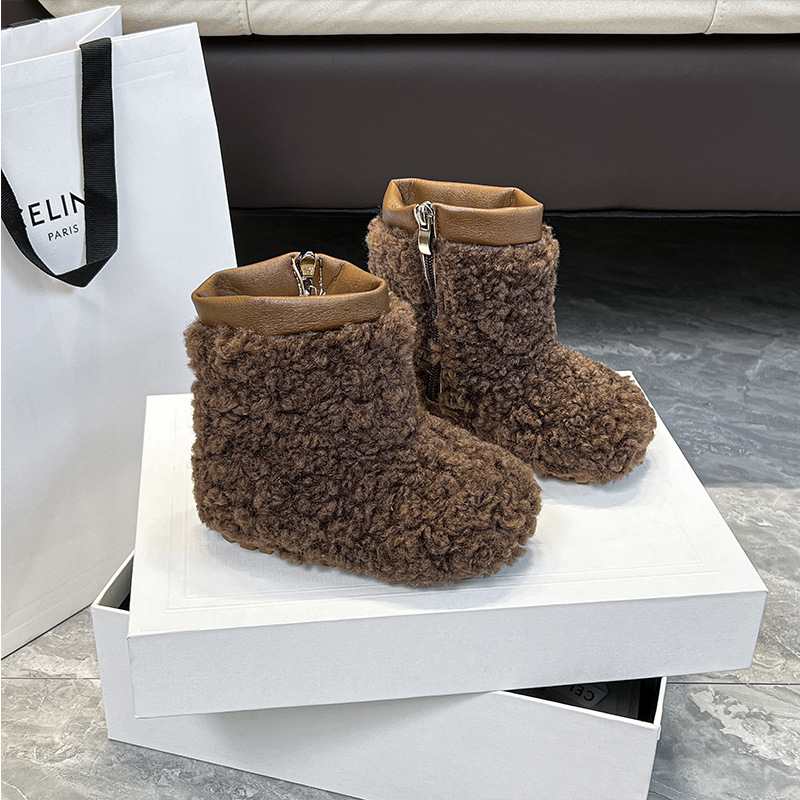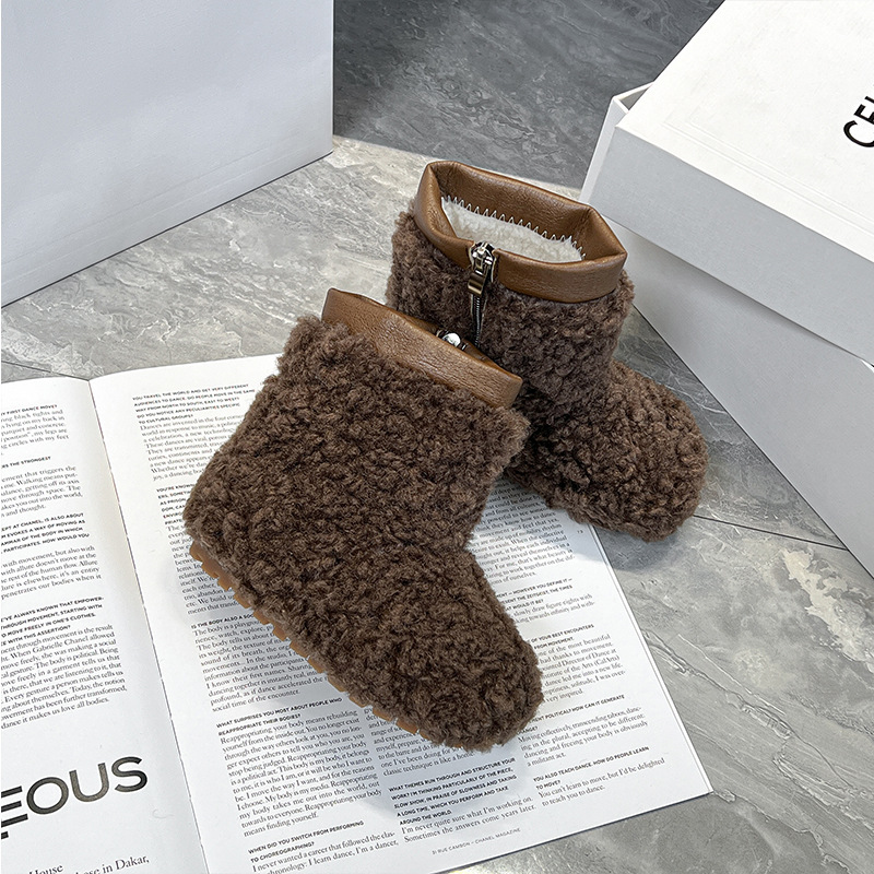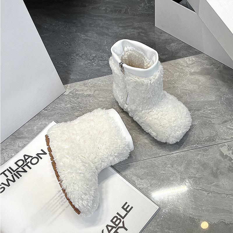 韩国雪地靴毛毛外穿中筒靴侧拉链加绒保暖毛毛鞋女童羊羔毛短靴软