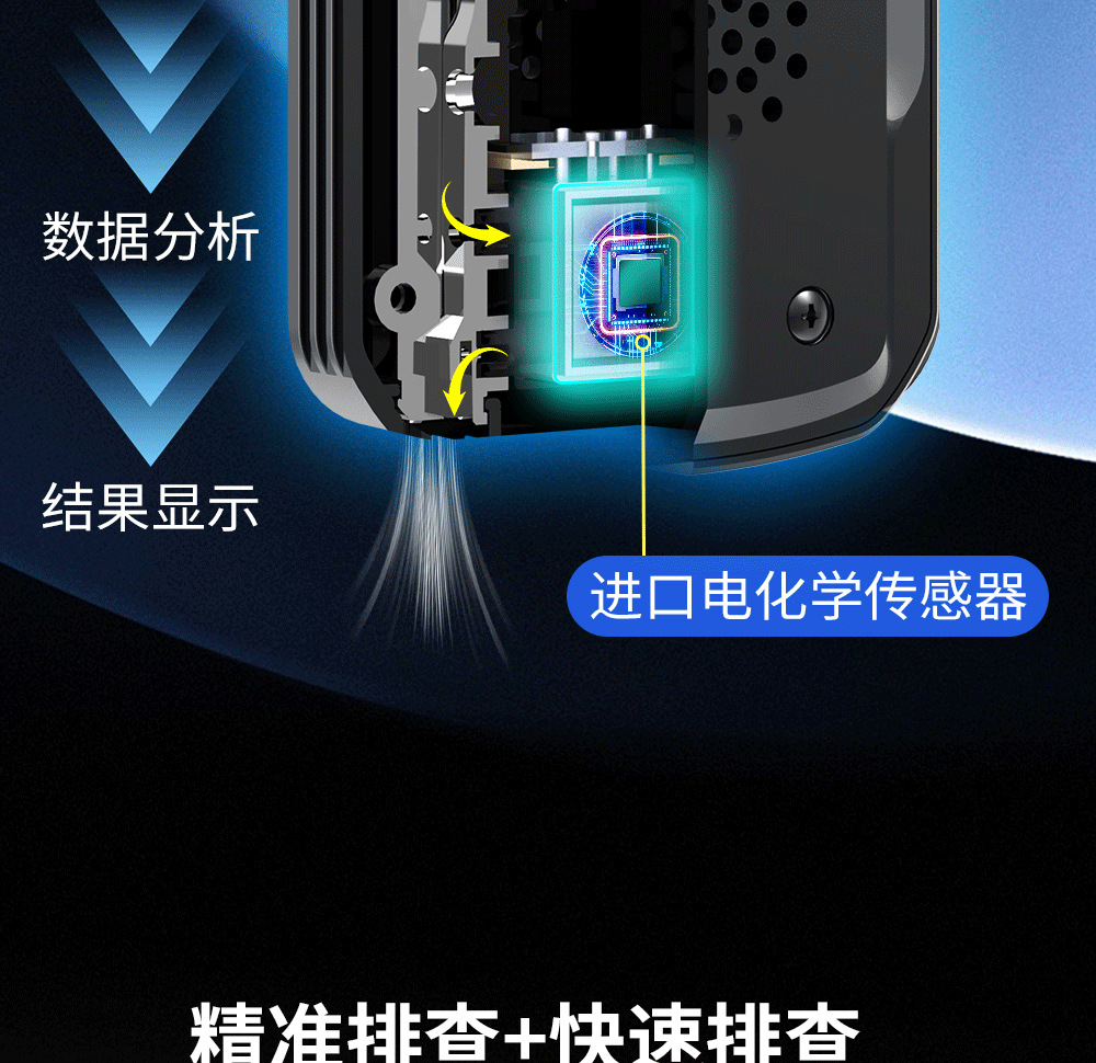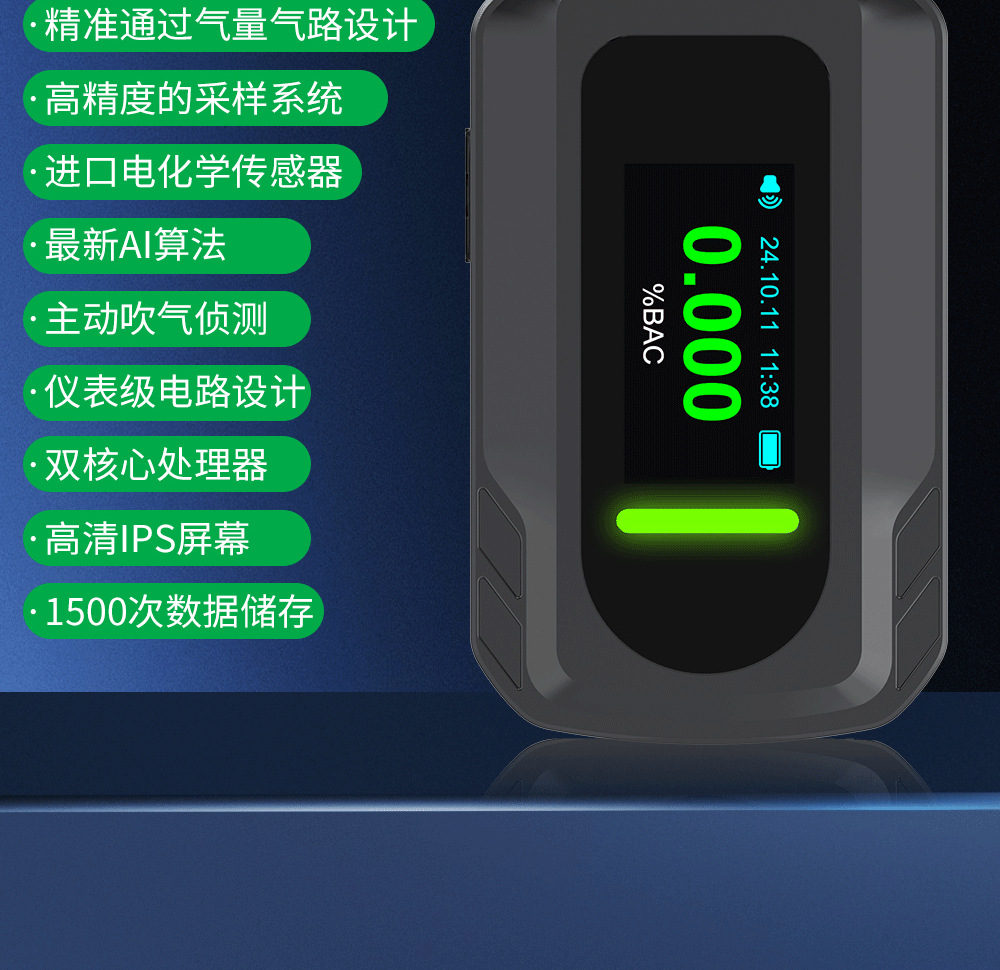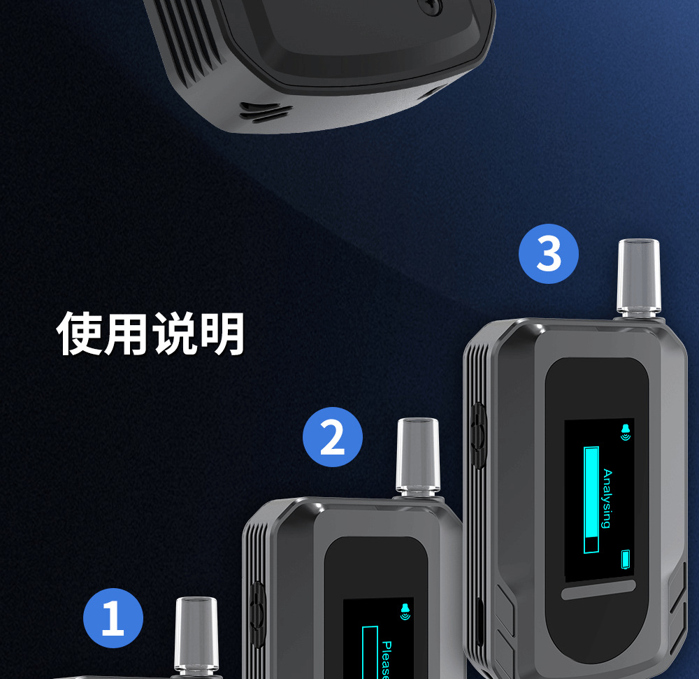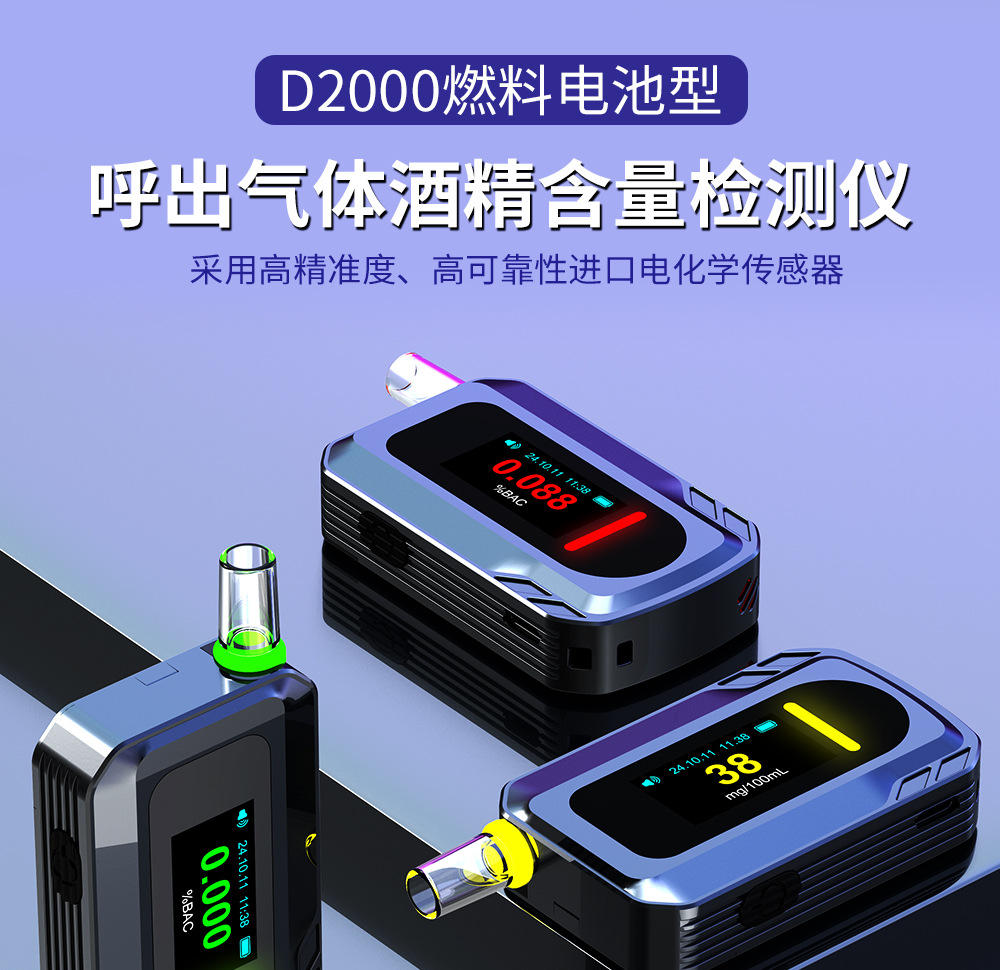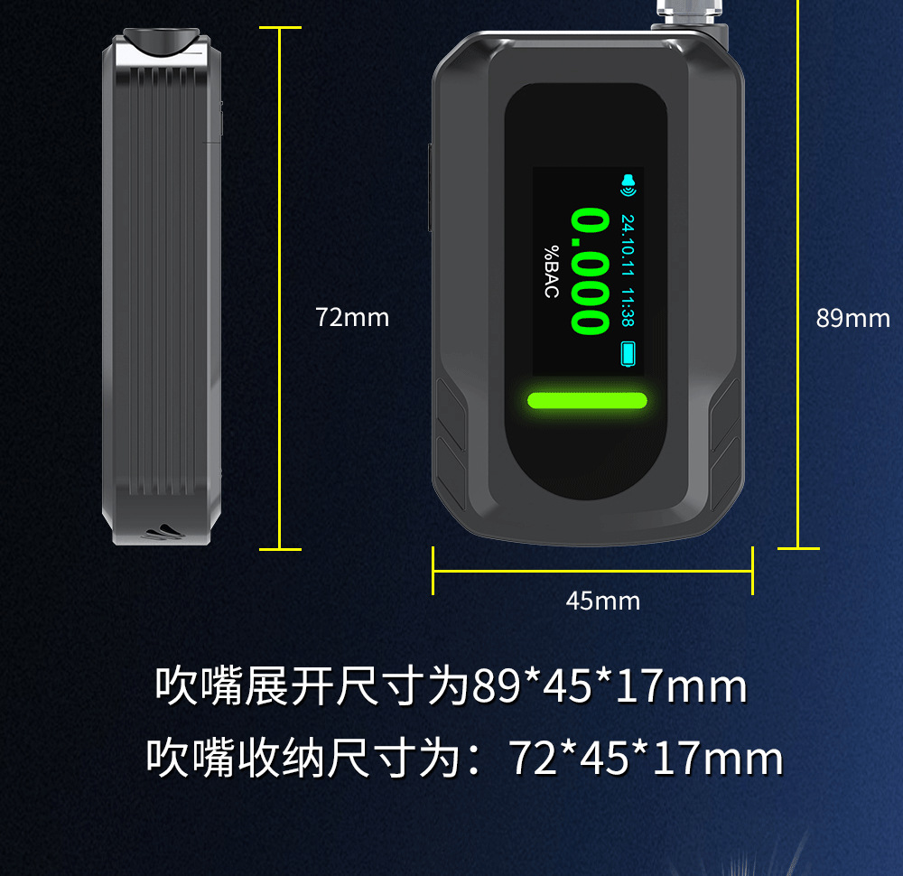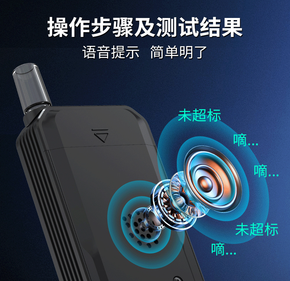 飲酒運転を検知する新型アルコール検知器、携帯用吹き込み式高精度、夜更かし酒専用