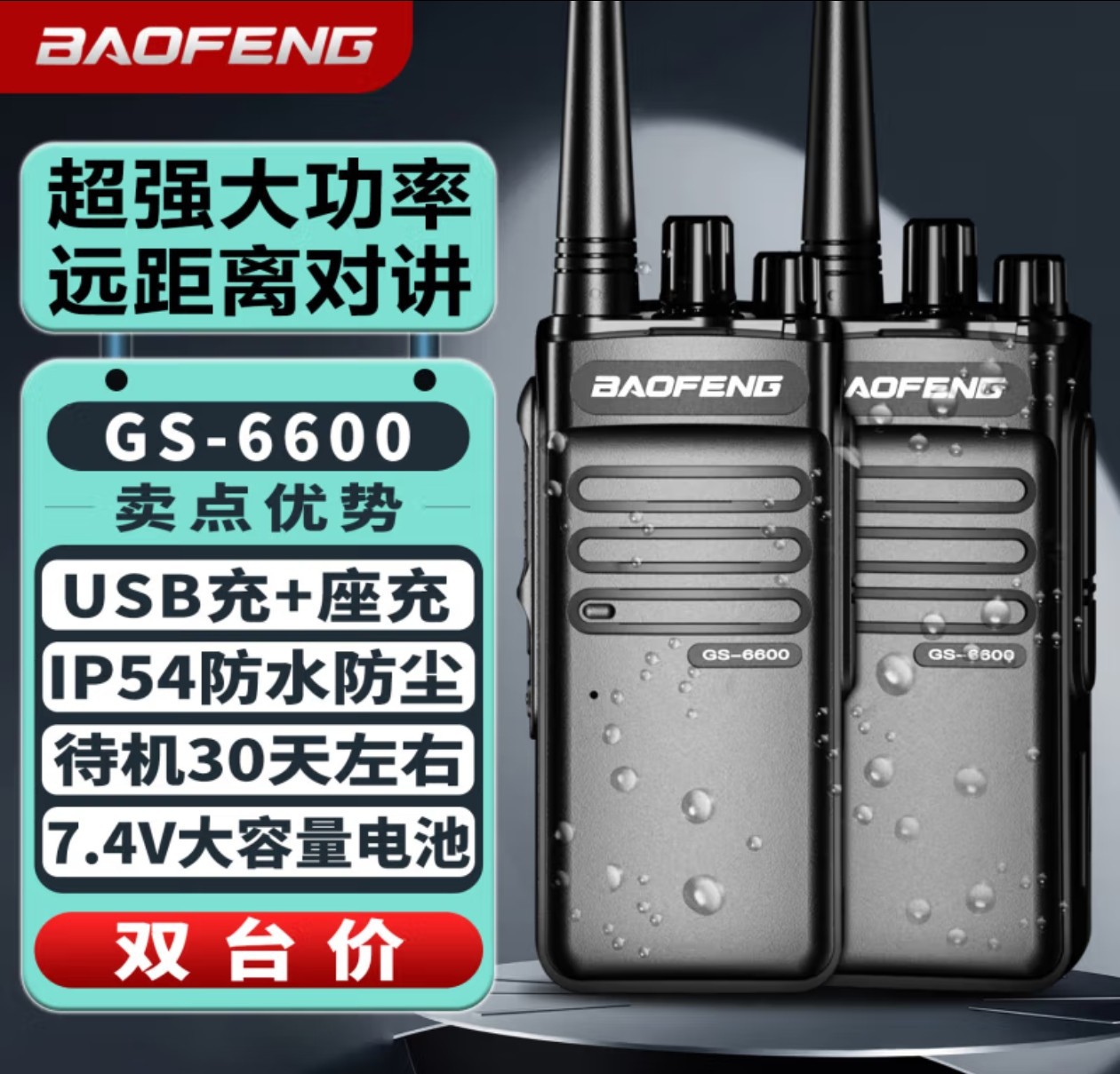 宝鋒のGS-6600のトランシーバーの大出力は遠距離で商用の民間人の屋外の工事現場のホテルのデパートで自分で運転して旅行します。