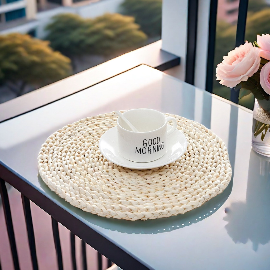 田園風のトウモロコシの皮は花を編んでマットを厚くして断熱の砂の鍋を敷きます。