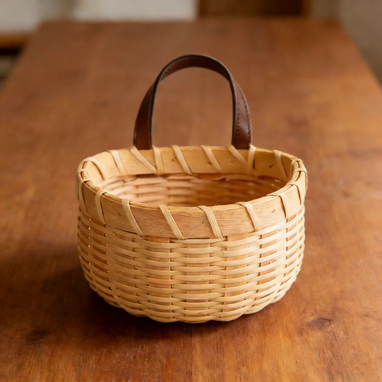木片バスケット人気商品 収納 日本風 暖色系 半円形 木片編み 小型壁掛け 多用途 家庭用収納バスケット