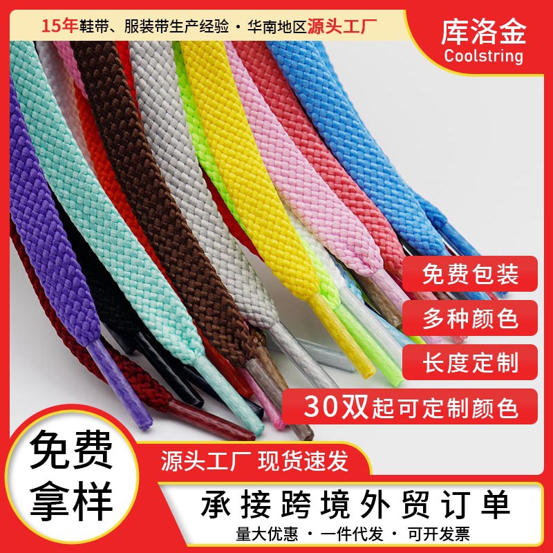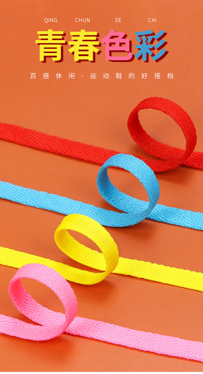 メーカー卸売りカラー単層ポリエステル靴ひも高組平底フラット靴ひも帆布運動板靴ひも卸売り