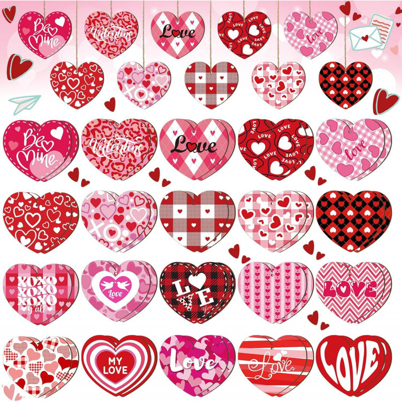 40ピースバレンタイン木の饰りハート型の饰り付けロマンチックな木の雕刻バレンタインの木の工芸品パーティーの饰り付け